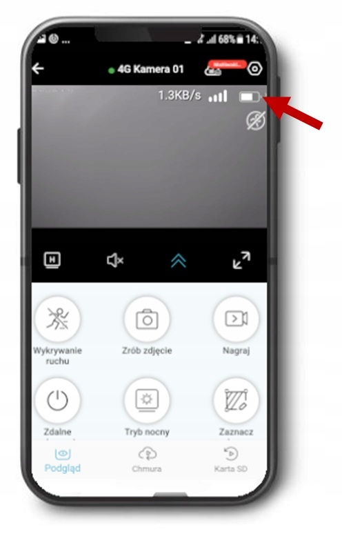 ❇️️ За допомогою програми на телефоні ми можемо контролювати рівень заряду акумулятора в камері. Ми отримуємо цю інформацію, візуально перевіряючи значок акумулятора (див. фото нижче).