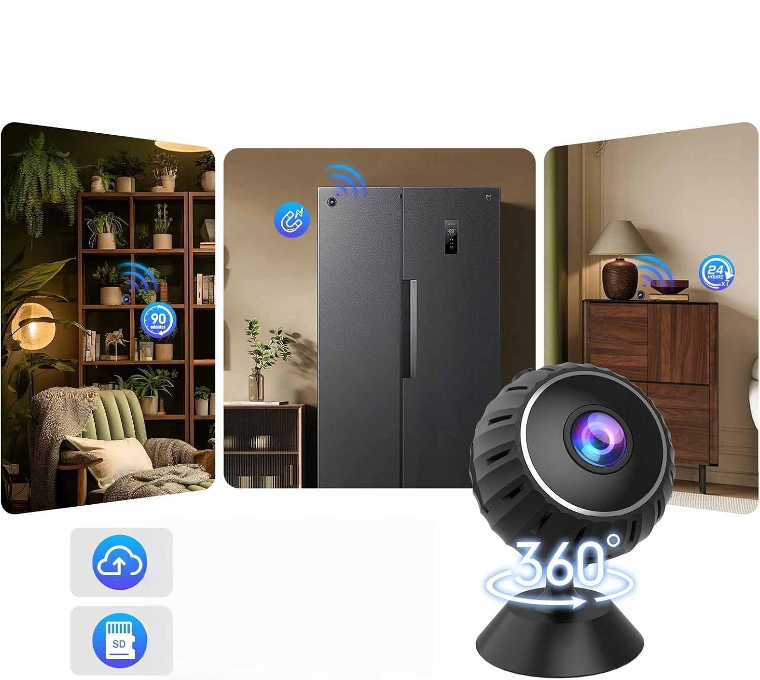 【Широкий кут 120° і роздільна здатність 1080P HD】Ця мінікамера для внутрішнього спостереження та безпеки має роздільну здатність 1080p HD для отримання чітких і деталізованих зображень. Поле огляду 120° забезпечує різні кути огляду.