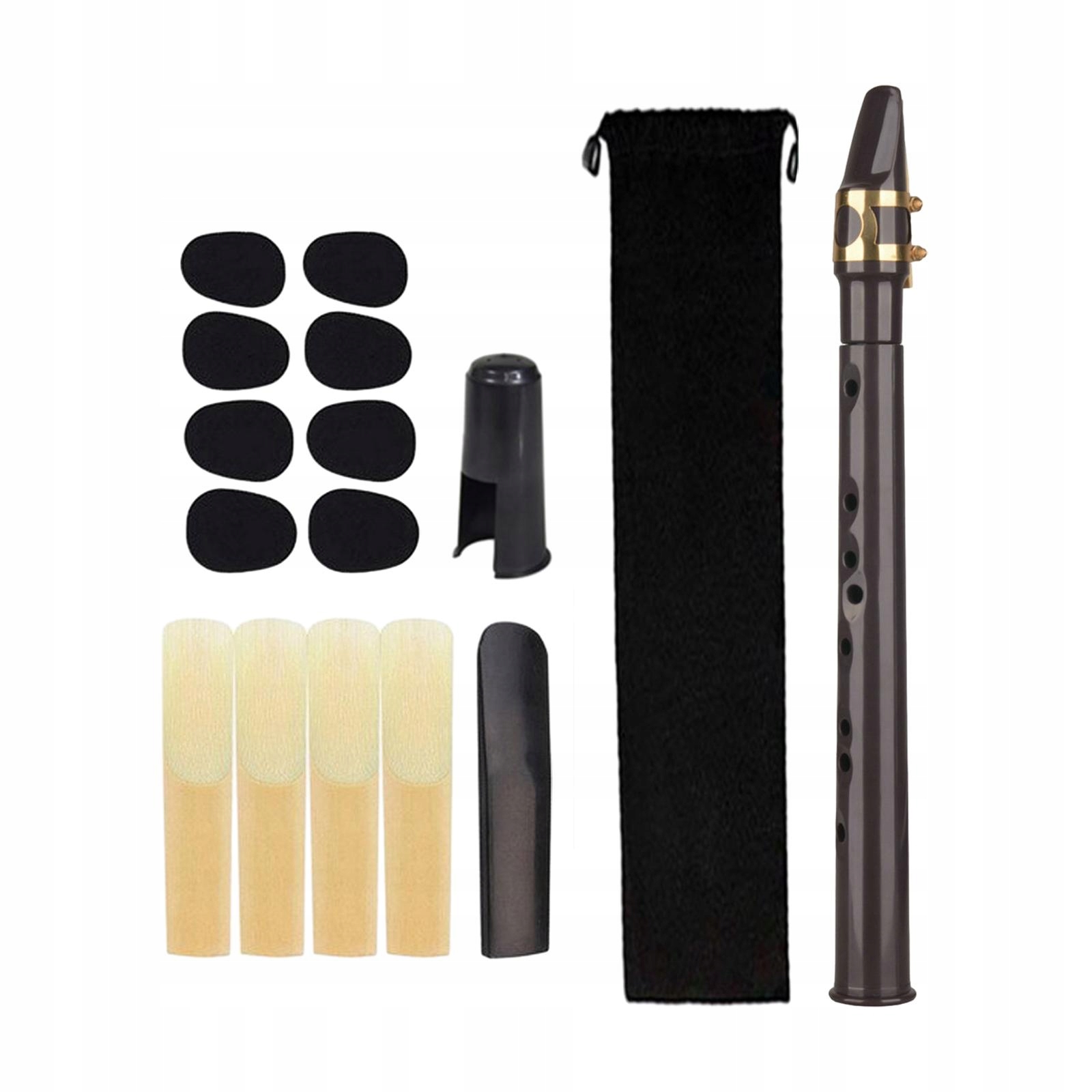 [Повний набір]: 1 кишеньковий саксофон, 5 тростинок, 8 подушечок, 1 мундштук, 1 оксамитовий мішок, 1 аплікатурна таблиця. Легко грати.