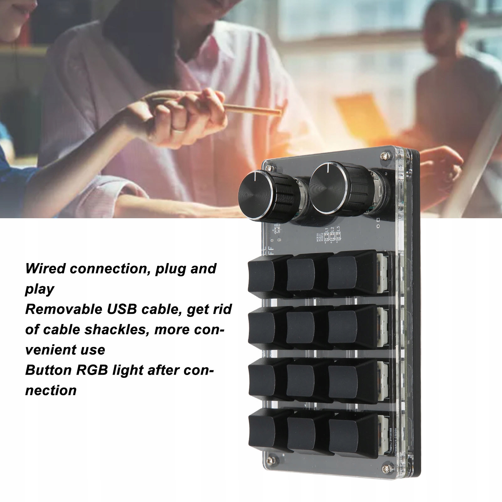 - Тип клавіші: 12-клавішна механічна клавіатура та 2 ручки (ручку можна використовувати як клавішу для натискання)