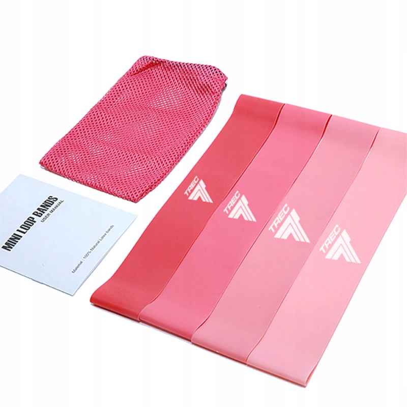 Набір міні-резистів для фізичних вправ складається з 4 стрічок із різною силою опору, визначених відповідним відтінком рожевого. Завдяки цьому ви можете легко адаптувати стрічки до своїх потреб у тренуваннях, забезпечуючи бажані результати.