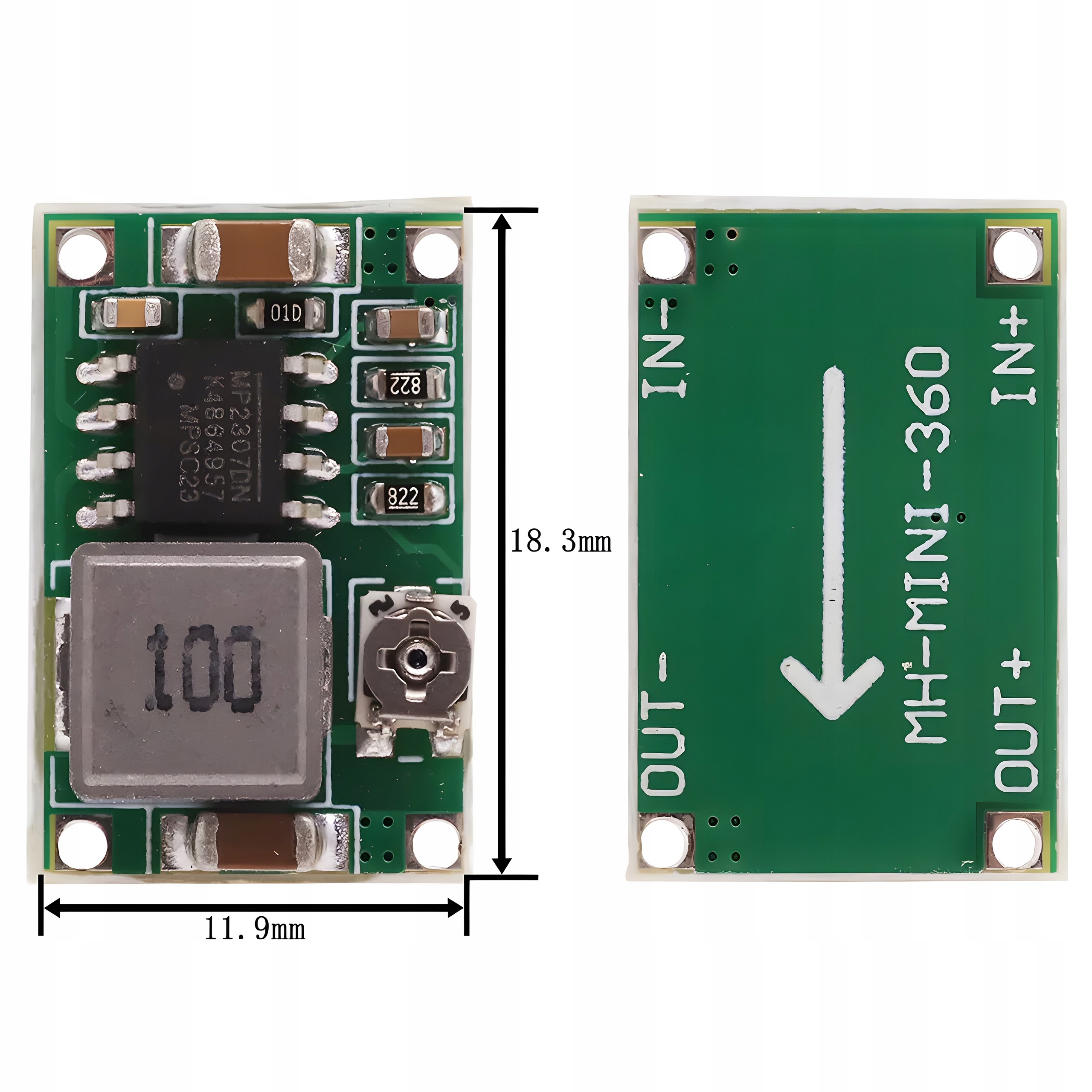 У нашому модулі ви знайдете чіп MP2307DN. Ця схема є ключовим елементом нашого продукту, забезпечуючи ефективне перетворення напруги. MP2307DN — стабільний стабілізатор напруги, який ідеально підходить для різноманітних застосувань. Завдяки наявності системи наш модуль гарантує точний контроль напруги, що важливо в проектах, де стабільність і надійність є вирішальними.