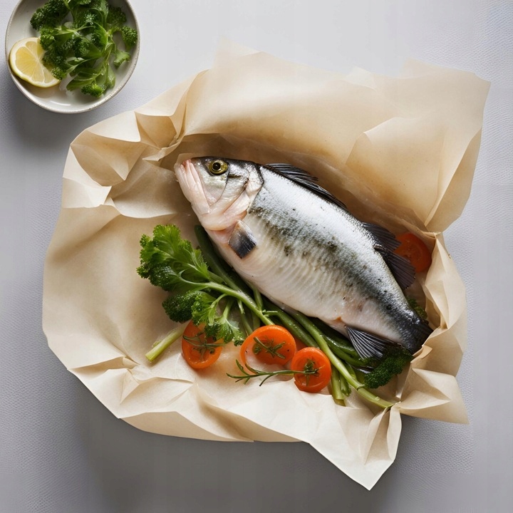 ⭐ «En papillote» означає спосіб приготування, за якого інгредієнти, зокрема рибу, поміщають у форму. духовці перед запіканням поміщають в «мішечок» з пекарського паперу. Ви також можете покласти в пакет овочі, масло, свіжу зелень, шматочок лимона тощо. Чудовий спосіб запікання без жиру, що дозволяє зменшити використання олії.
