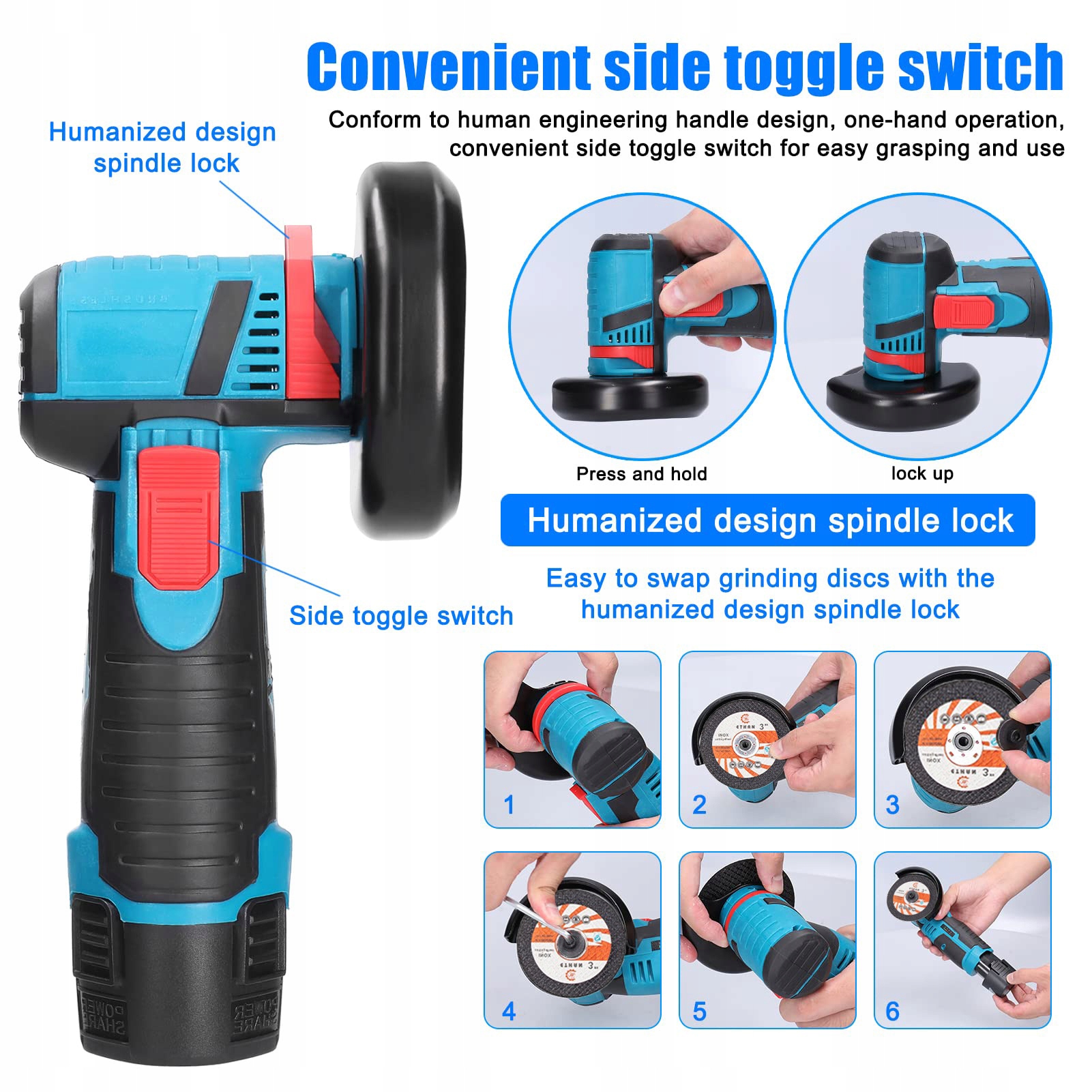 МІНІ КУТОВА ШЛІФУВАЛЬНА МАШИНА АКУМУЛЯТОРНА БЕЗЩІТКОВА ГУМА 2x АКУМУЛЯТОР 3x ДИСК