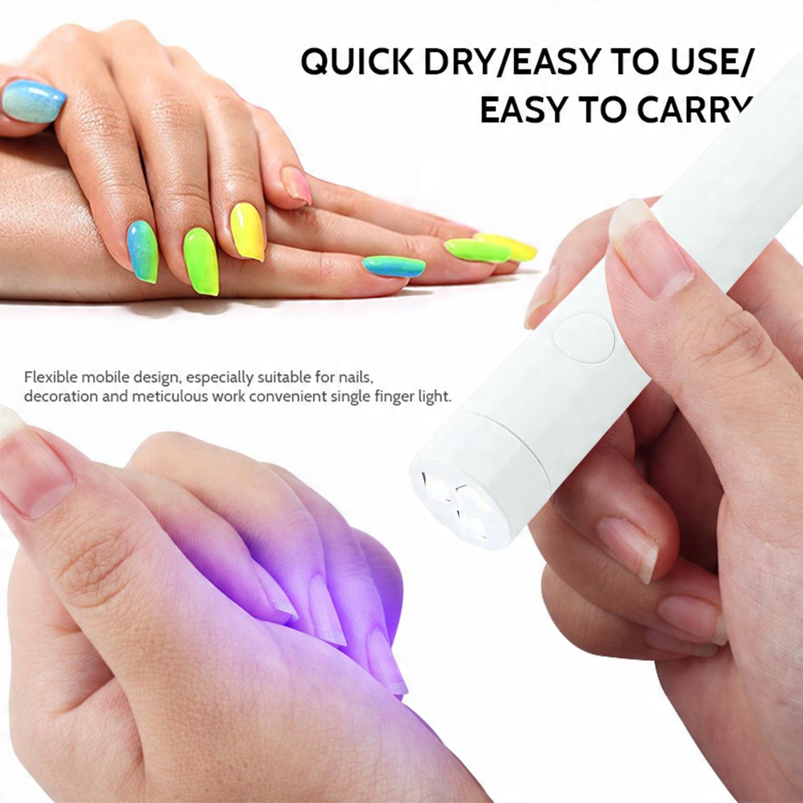Легко: гнучкий мобільний дизайн, особливо підходить для нейл-арту, декору та ретельної роботи, зручний підсвічування одним пальцем