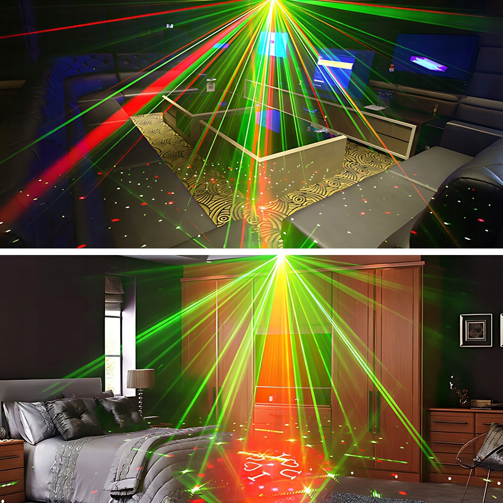 Оснащені 48 видами комбінацій візерунків, ді-джейські ліхтарі створюють для вас блискучу вечірку. Лазерні ліхтарі мають 3 режими роботи (стробоскоп/автоматичний/звук активований), можуть мати різні стилі кольору зі зміною.