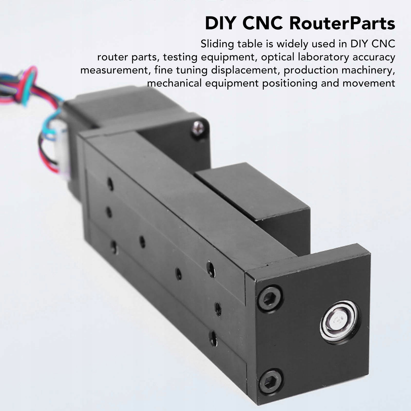 1, ВІДПОВІДНІ СЦЕНИ: розсувний стіл широко використовується в деталях фрезерів із ЧПК DIY, випробувальному обладнанні, оптичному лабораторному вимірюванні точності, точному налаштуванні переміщення, виробничому обладнанні, позиціонуванні та переміщенні механічного обладнання 2 , СТАБІЛЬНИЙ ТА ЕФЕКТИВНИЙ: Розсувний стіл виготовлено з чудового металу, має відмінну якість виготовлення, стабільну продуктивність, високу ефективність роботи, є важливою частиною лінійного руху 3, ТОЧНІСТЬ ТА НАВАНТАЖЕННЯ: повторювана точність позиціонування розсувного столу становить ±0,05 мм, максимальна горизонтальна вантажопідйомність 2,5 кг, максимальна вертикальна вантажопідйомність 1 кг, швидкість від 0-120 мм/с 4. ІНФОРМАЦІЯ ПРО РОЗМІРИ: Привід затвора має ефективний хід 200 мм, діаметр 6 мм, крок гвинта 1 мм , крок 1 мм (різьбовий стрижень може рухатися на 1 мм за один оберт) 5. ІЗОЛЯЦІЯ ТА БЕЗШУМНІСТЬ: Високошвидкісний гвинтовий стрижень, плавний хід, одна доріжка, використання ізоляційних матеріалів і потовщена структура нижньої пластини для забезпечення стабільності в роботі