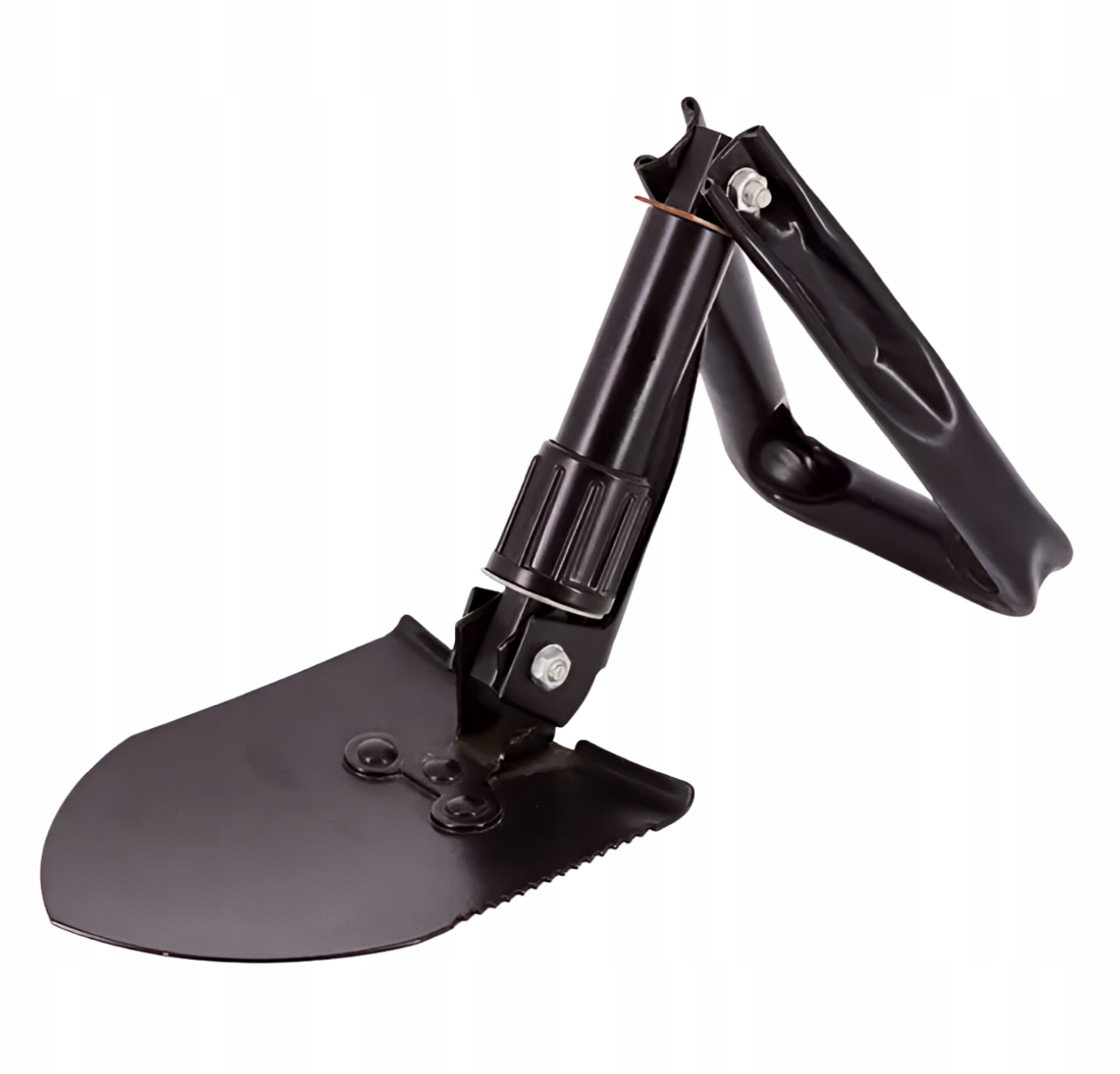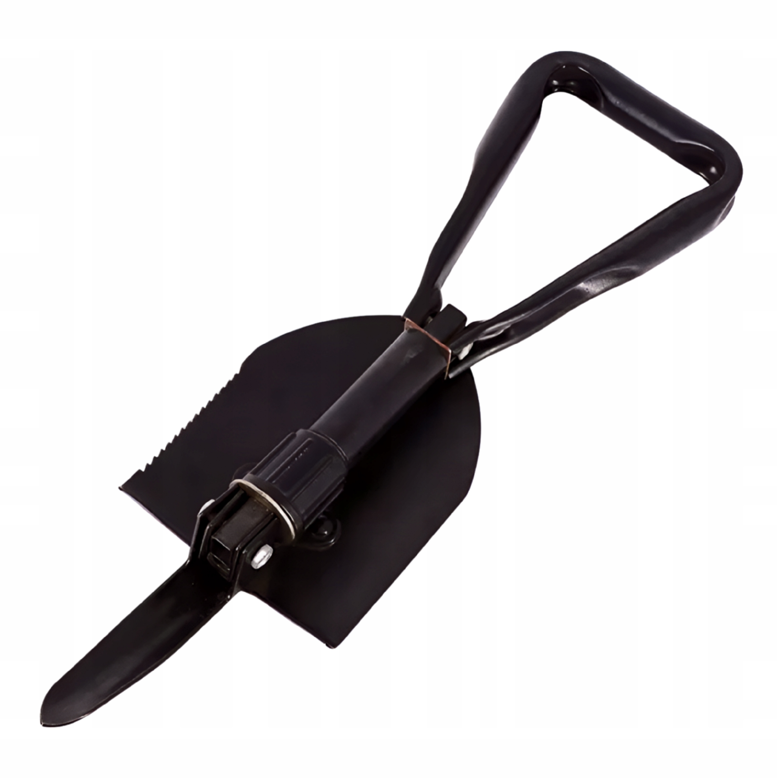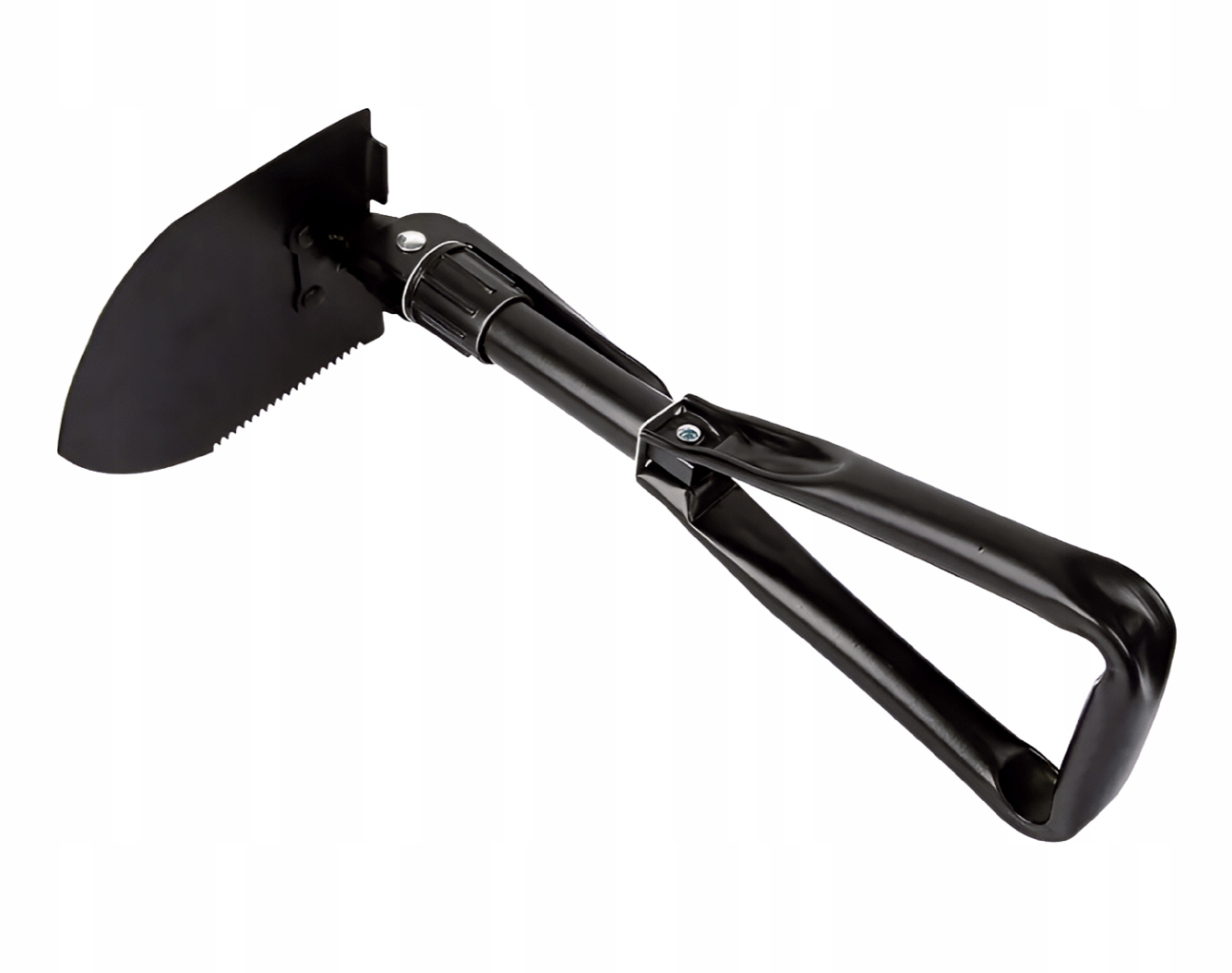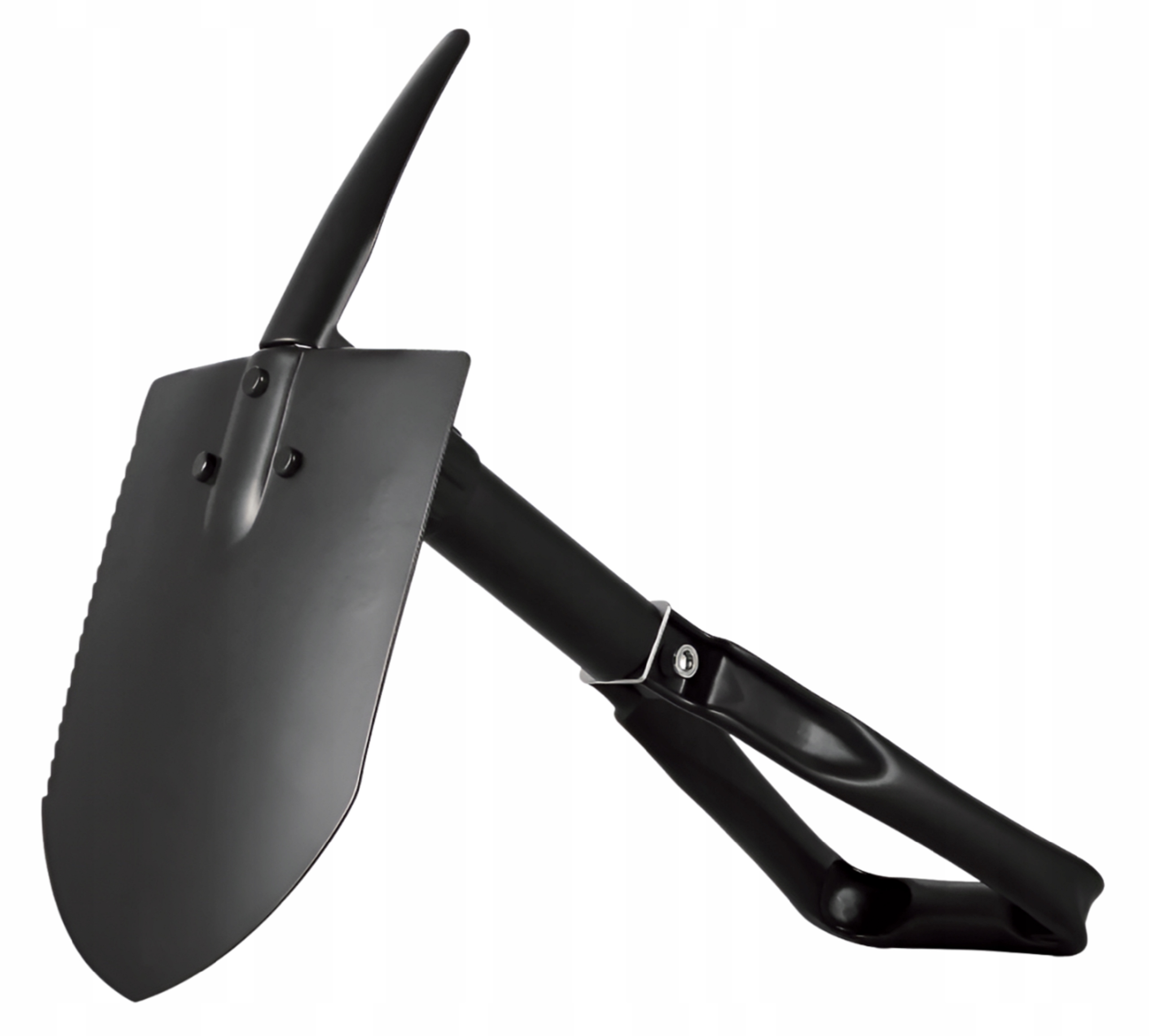 Лопата поєднує в собі три незамінні інструменти: лопату, кирку та пилку. У набір входить чохол із петлею для ременя. Також корисний під час, напр. експедиції виживання на природі.