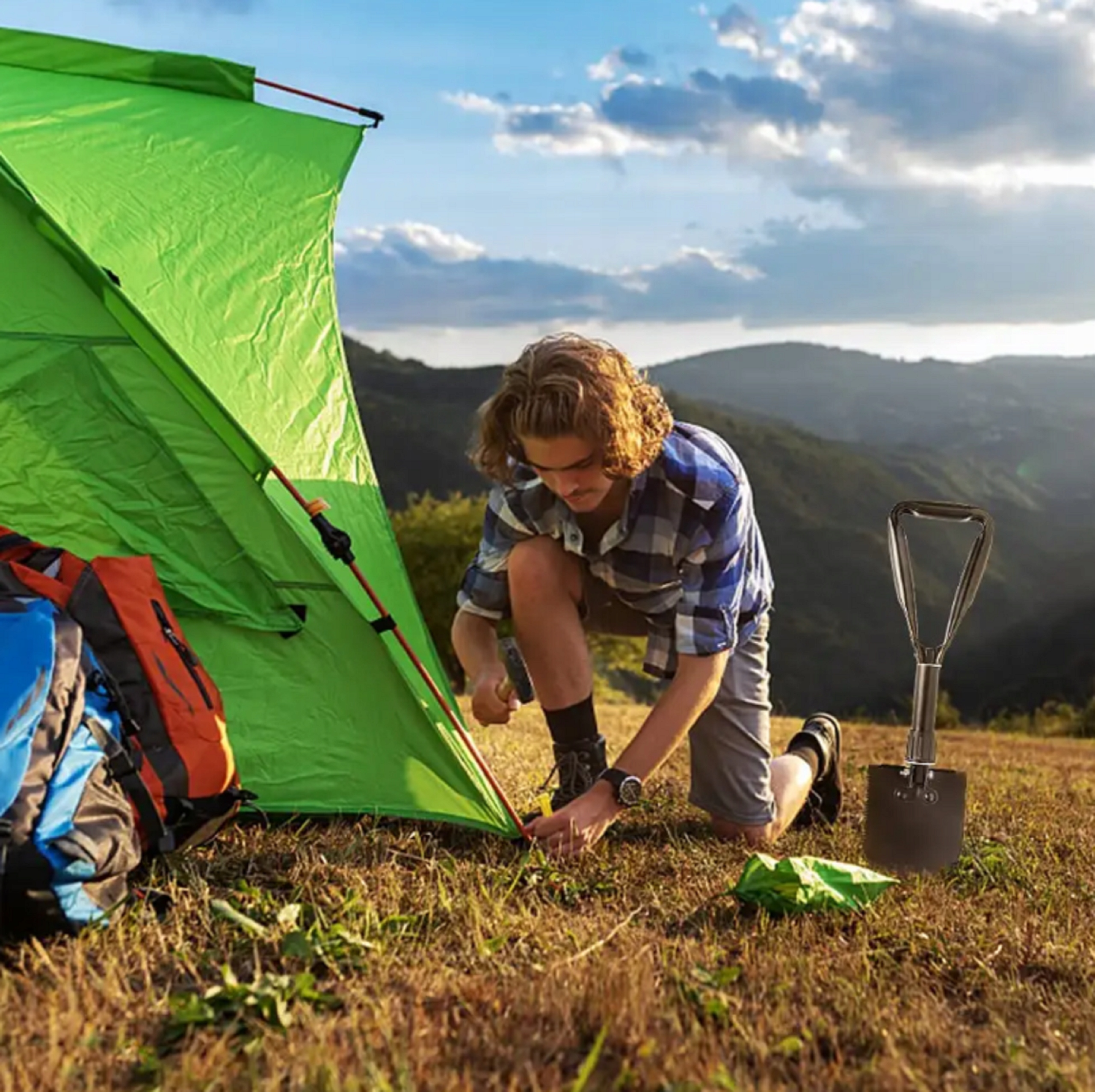 Лопата металева, проста у використанні. Незамінний вдома, в машині, на присадибній ділянці, під час подорожі, походу чи риболовлі. Завдяки невеликим розмірам у складеному вигляді легко поміститься в рюкзак або сумку.