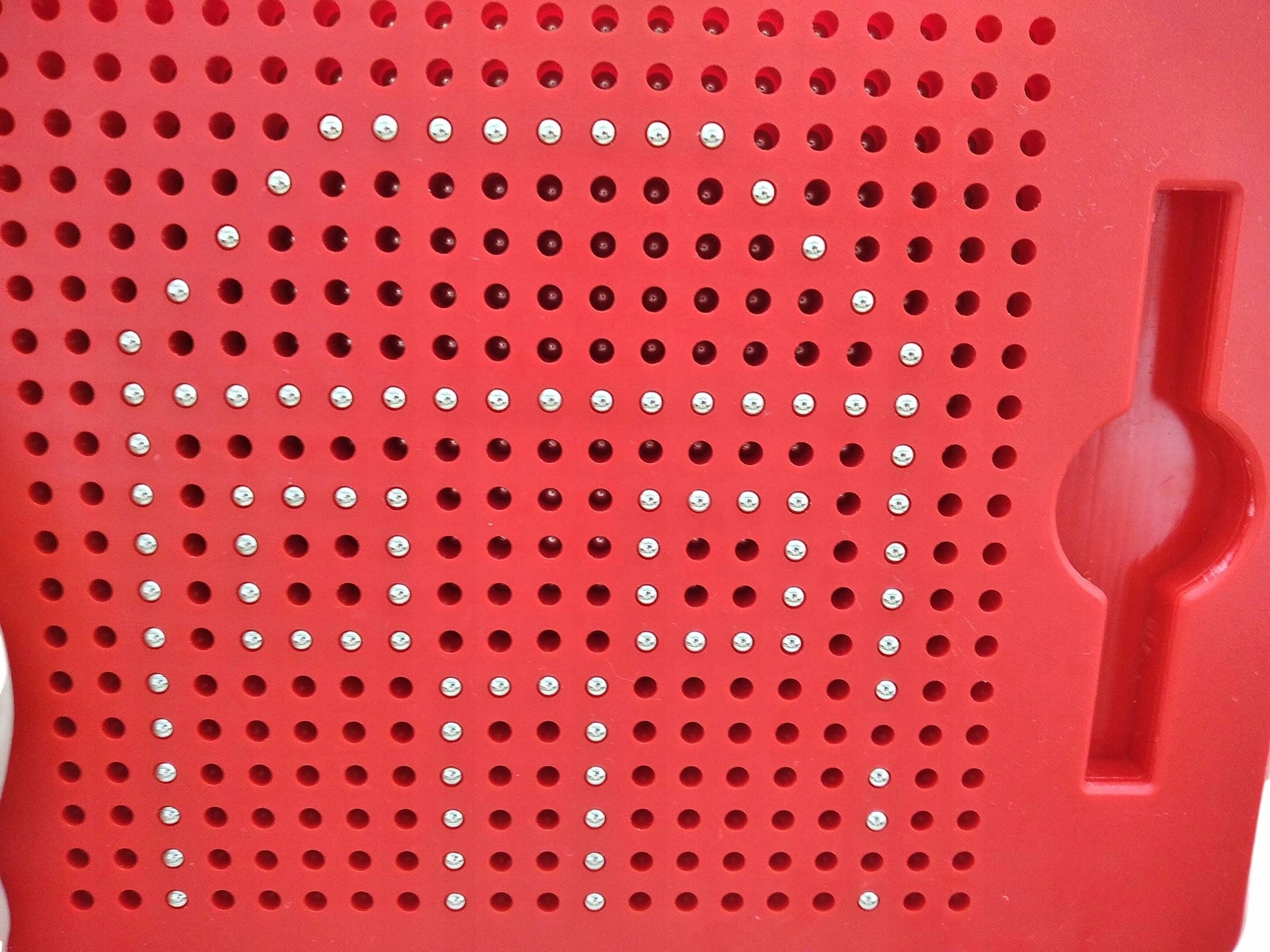 Коли ви рухаєте намагніченим кінчиком пера над отворами на дошці, кульки осідають, створення малюнка.