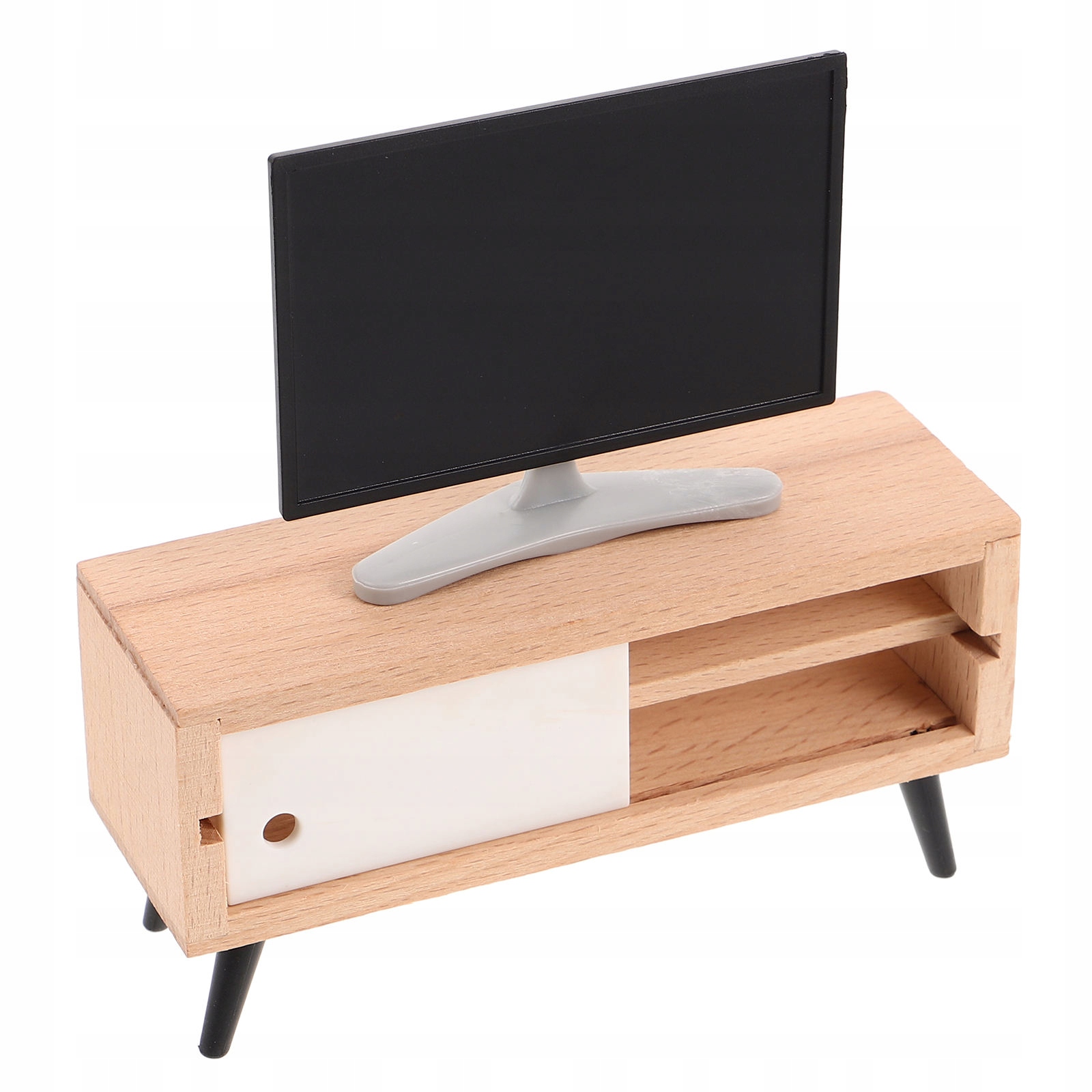 МІНІ МЕБЛІ ДЛЯ ЛЯЛЬКОВОГО БУДИНКУ - КОЛЬОРОВИЙ ТЕЛЕВІЗОР З ШАФКОЮ І LCD