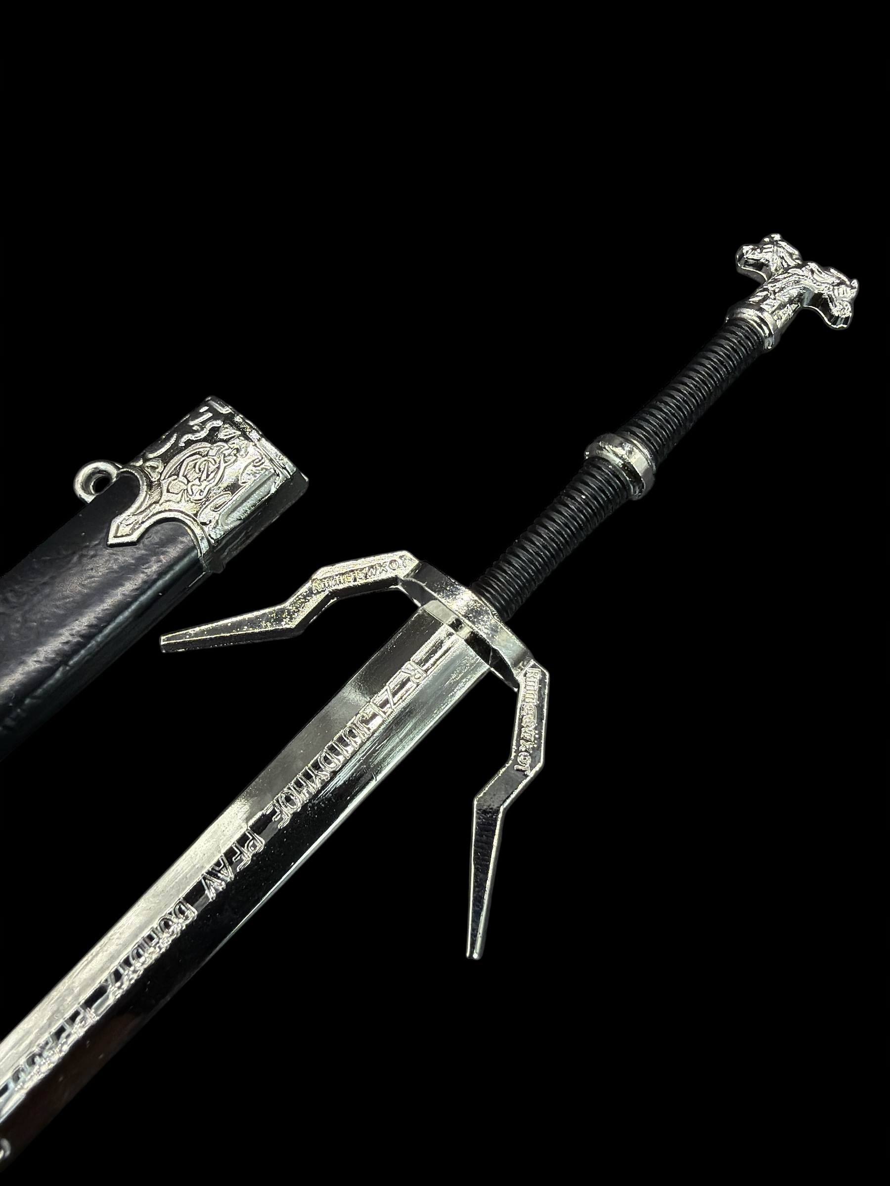 Міні-меч Ґеральта – ідеальна дрібничка для справжнього шанувальника Відьмака. Зроблений вручну з металу, зі сталевим лезом і ретельно відтвореною головою у формі вовка, цей 22-сантиметровий відкривач для листів поєднує в собі функціональність і колекційний стиль. У набір входить металевий футляр, підставка для демонстрації та елегантна подарункова коробка — готова до негайного подарунку.