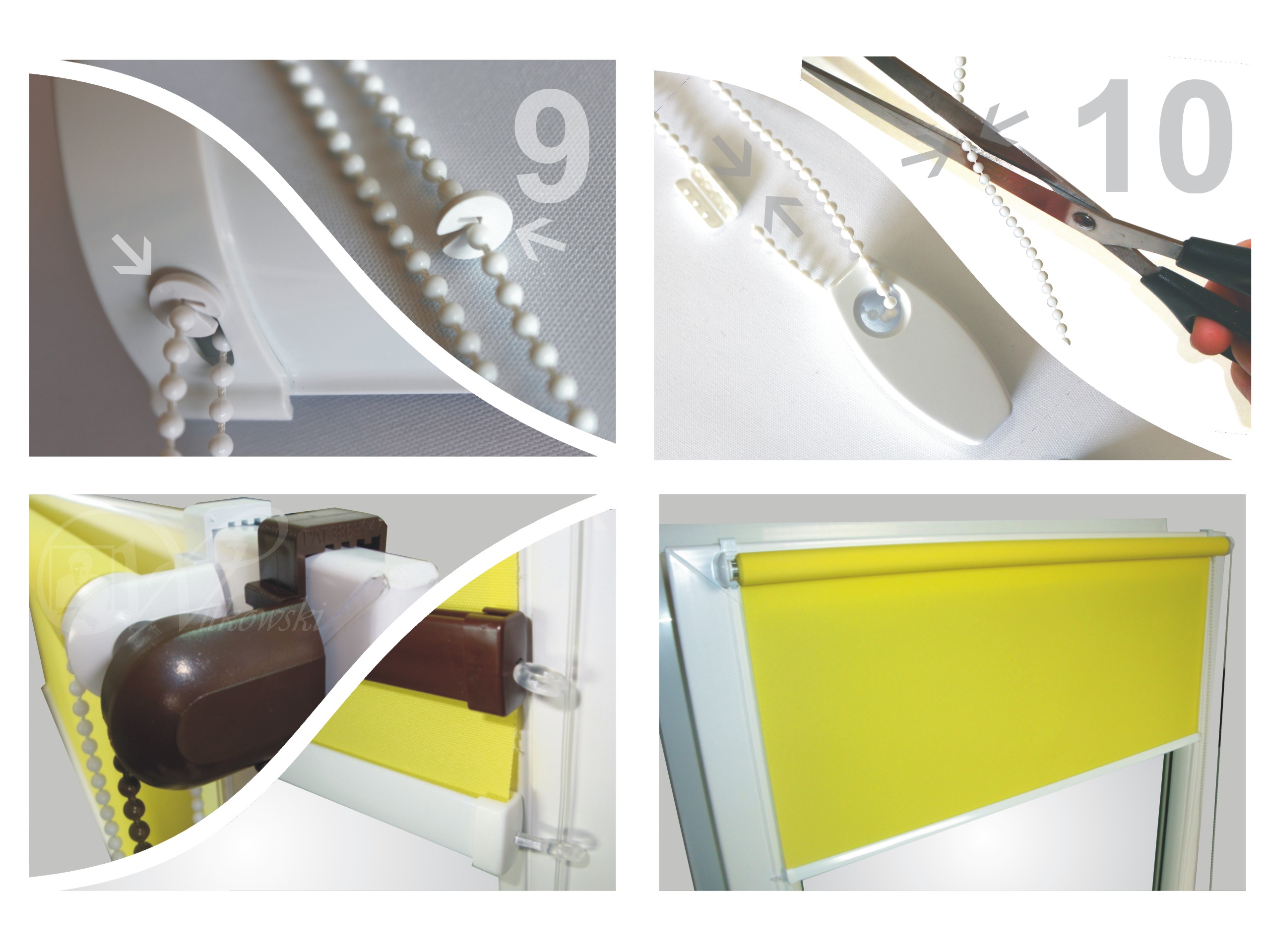 - Знімаємо стрічку кріплення матеріалу і можемо перевірити розгортання та згортання матеріалу рулонної штори (фото 8).