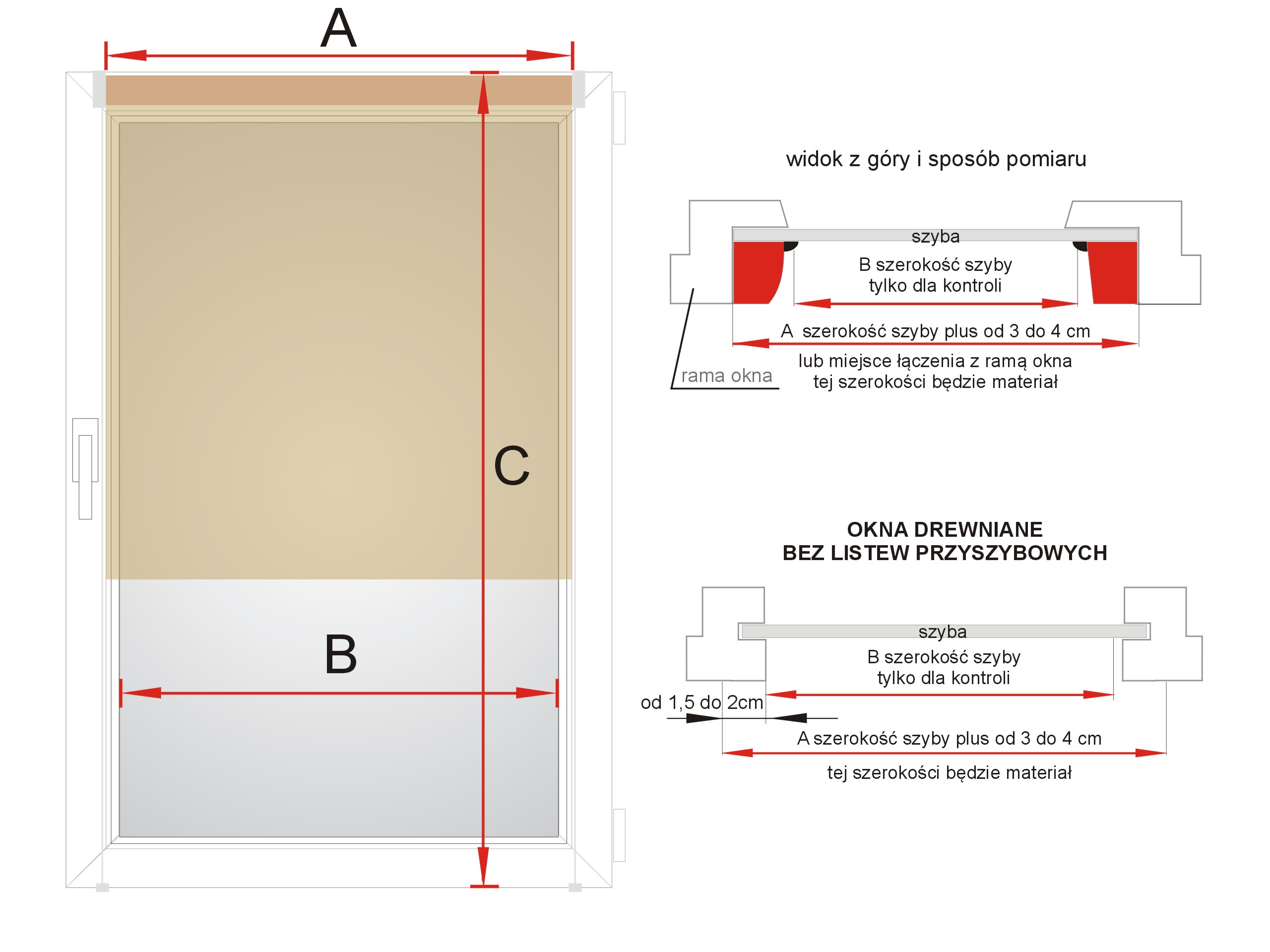 A: ширина тканини, тобто ширина скла + 3-4 см (місце вимірювання - з'єднання стрічки з віконною рамою, така ширина буде тканиною рулонна штора)