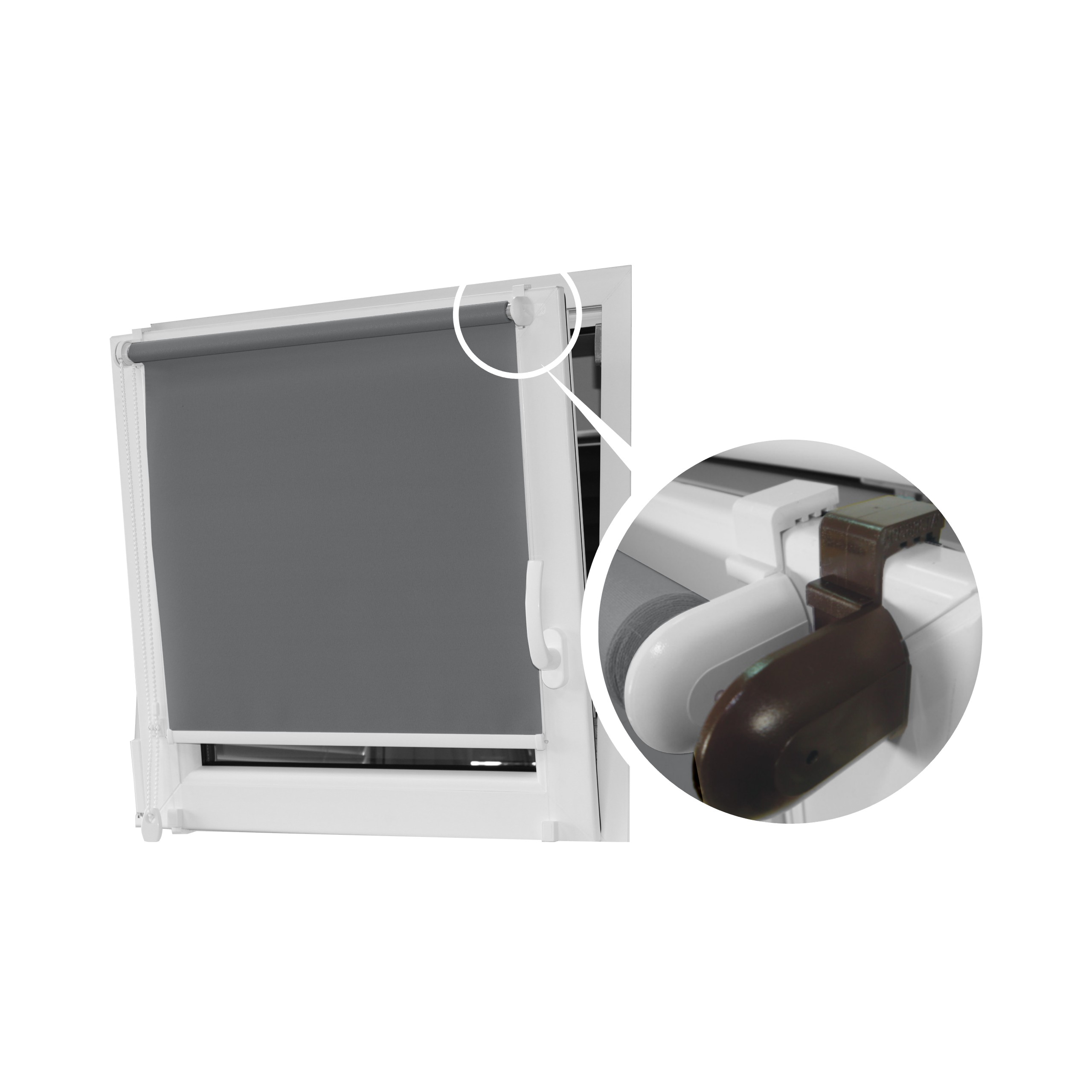 - Рулонні штори доступні в накладному варіанті (з так званими гачками) і на гвинтовому варіанті (накладний варіант також готовий до загвинчування після зняття фіксаторів). Фіксатори регулюються і закривають край вікна шириною до 25 мм.