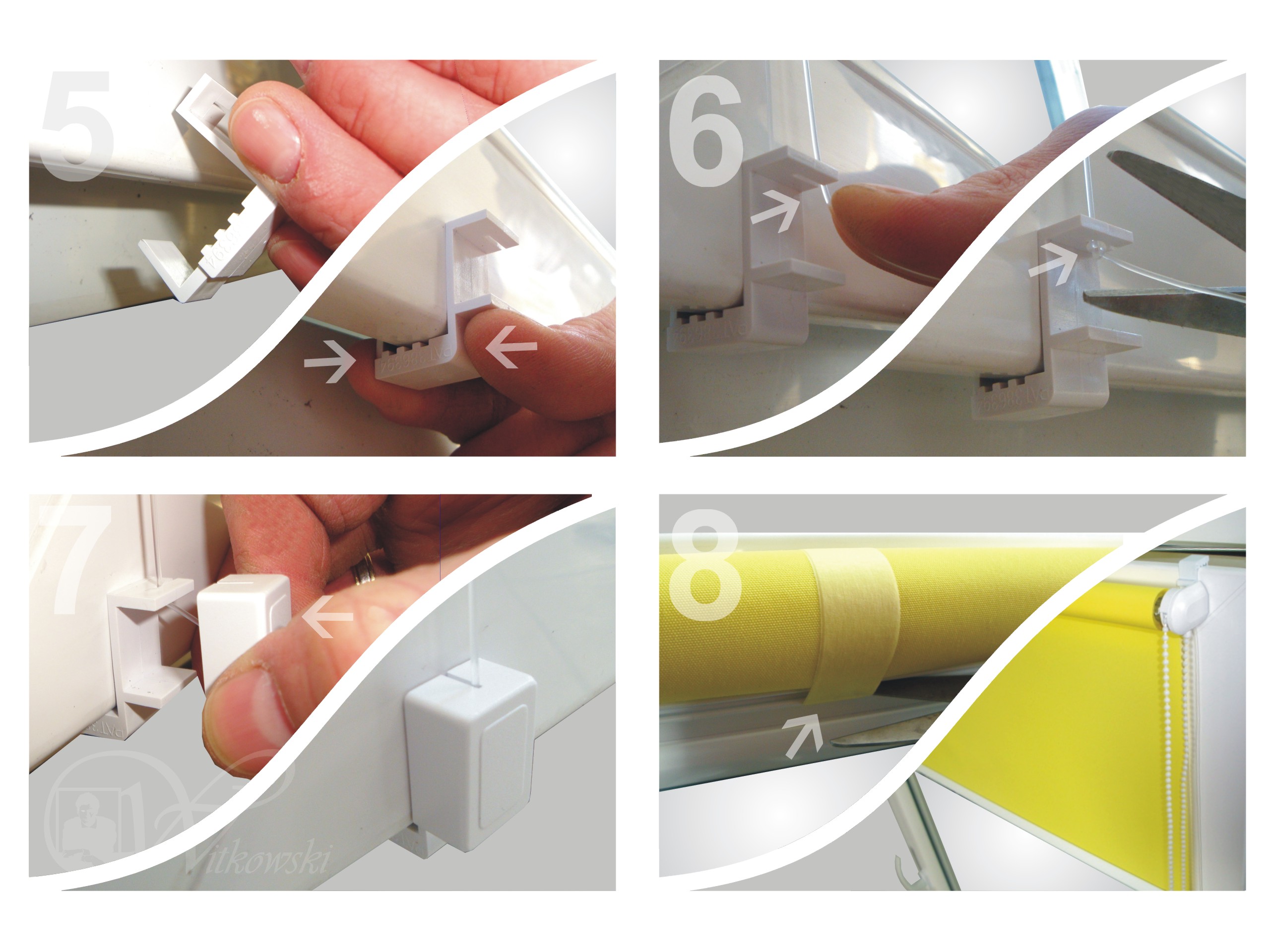 - Будь ласка, прикріпіть тримачі для натягу струни, зачепивши їх за нижній край віконної рами (фото 5).