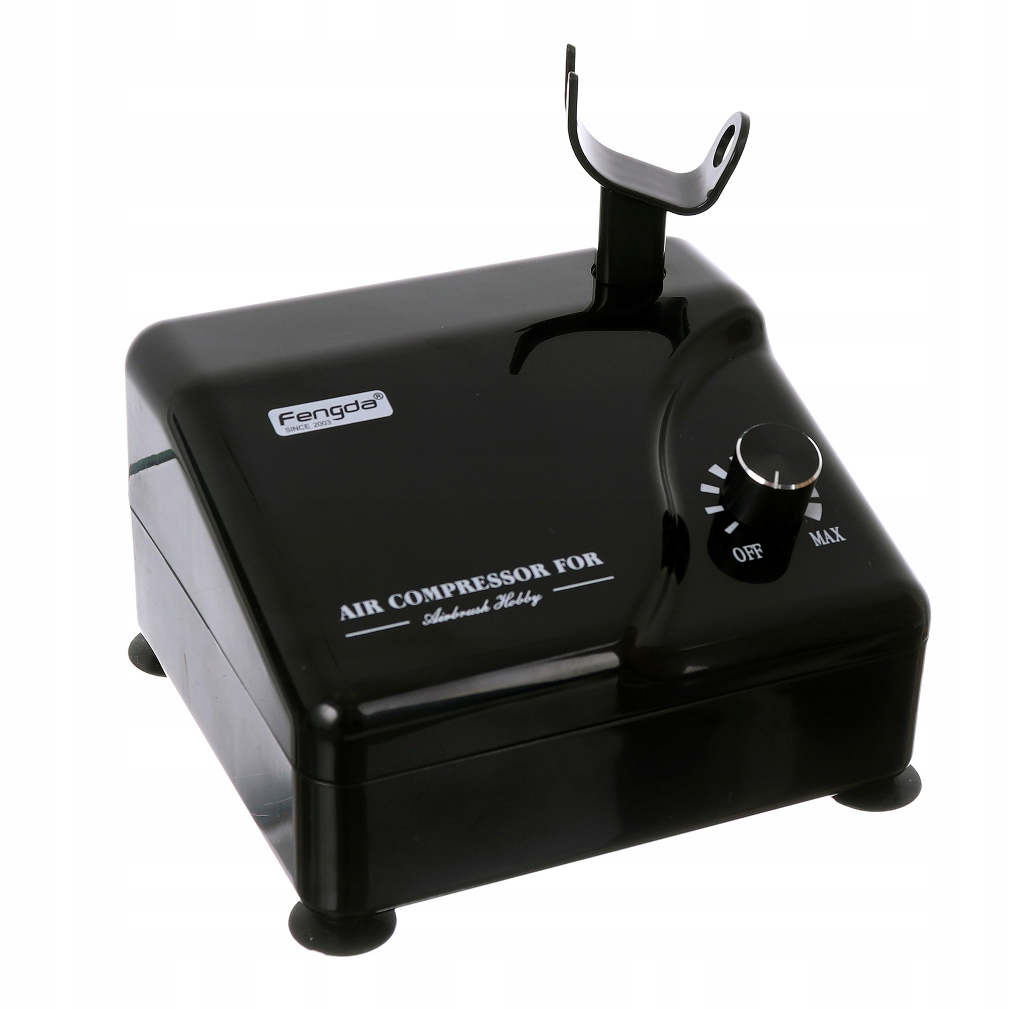 - Компресор оснащений регулятором тиску та підставкою для аерографа.