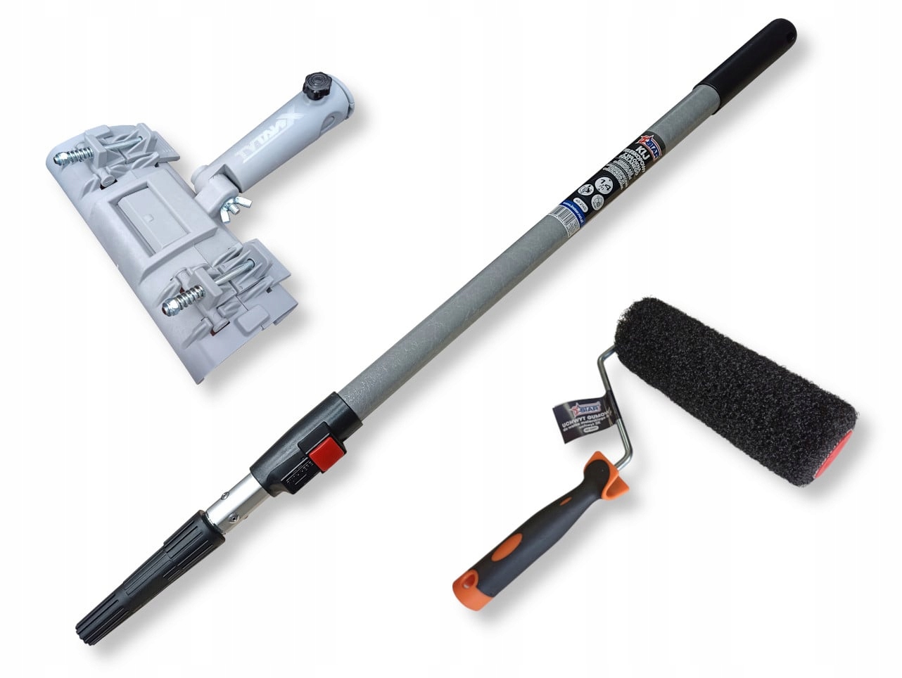 Що ще в наборі? 80 до 140 см, на якому ви можете легко встановити адаптер з шпаклівкою або валиком. Наконечник палиці, закінчена металевою ниткою , також має адаптер, який дозволяє прикріпити до клину . Ширина 25 см, у ньому є щетина з нейлонового волокна. Ручка для валика встановлена на 8 мм сталевого стрижня , що забезпечує стабільність під час роботи.
