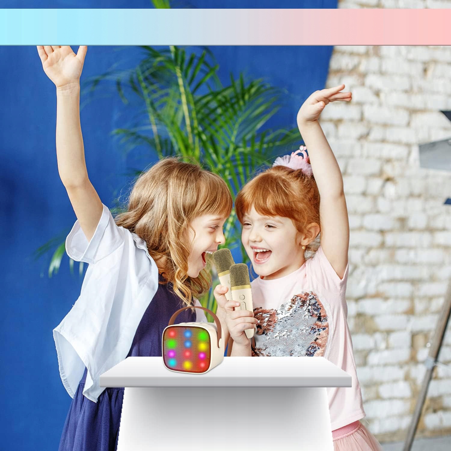 Дитяче караоке має чарівні голоси, простими в експлуатації. Мила зовнішність, весела і цікава дітям. Він оснащений потужним аудіодрайвером і вдосконаленим цифровим процесором сигналу, який робить звук чистішим і дозволяє уникнути дратівливого відгуку мікрофона. Світлодіодні ліхтарі б’ють у ритмі музики, дітям сподобаються танцюючі вогники, які вільно рухаються разом із звуком.