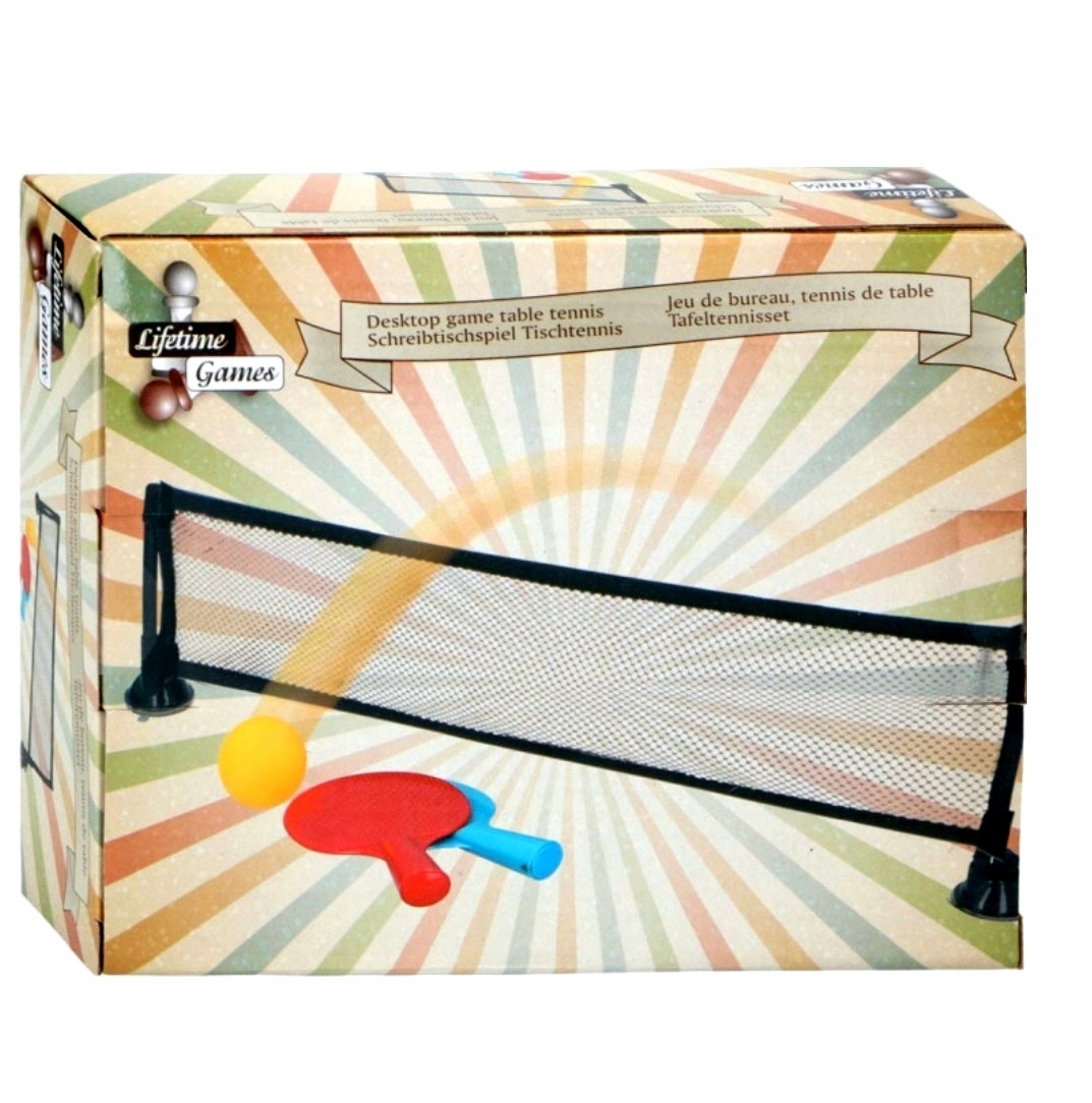 Вміст: сітка, 2 присоски, м’яч і 2 ракетки для настільного тенісу. Для дітей від 5 років.