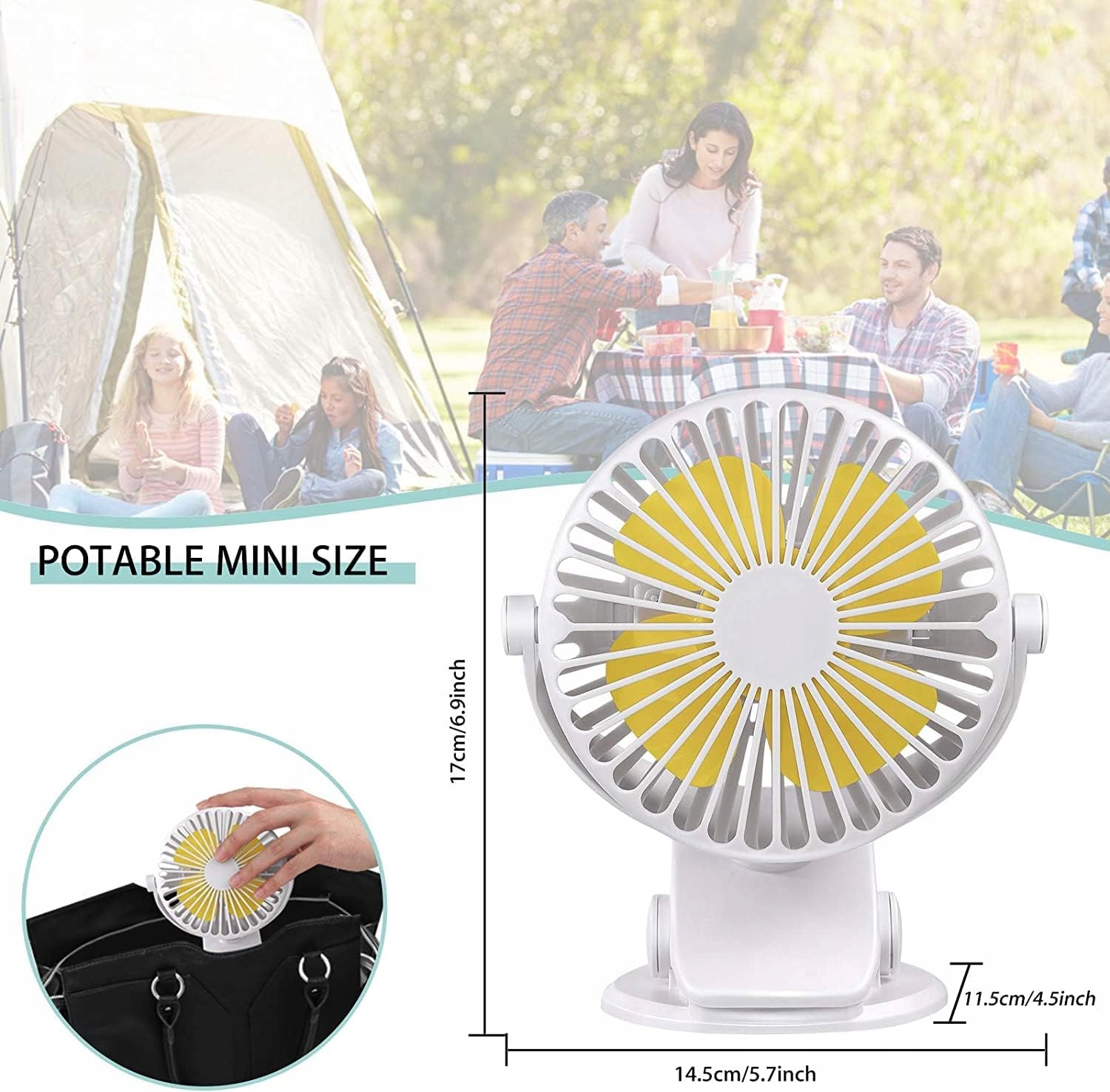 Вентилятор із кліпсою; Перезаряджуваний міні-USB настільний вентилятор, 3-швидкісний портативний охолоджуючий вентилятор для столу в спальні