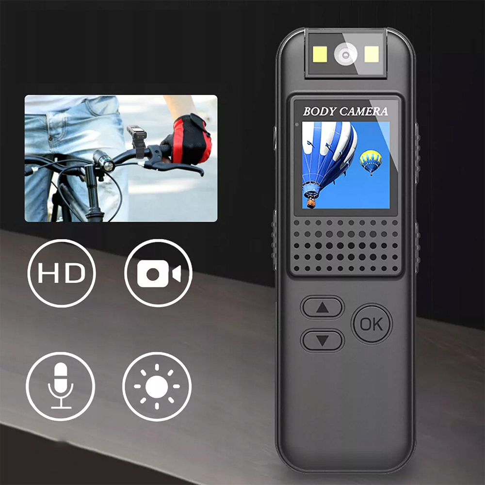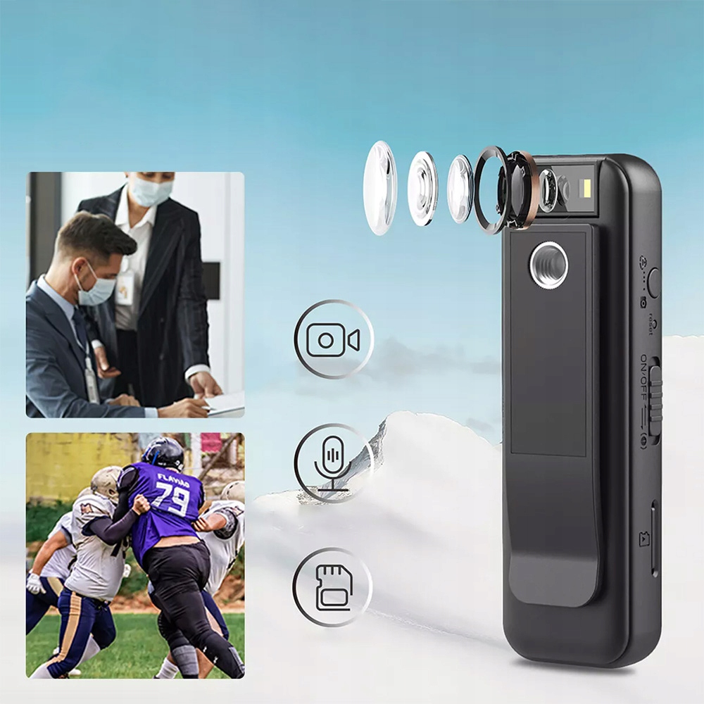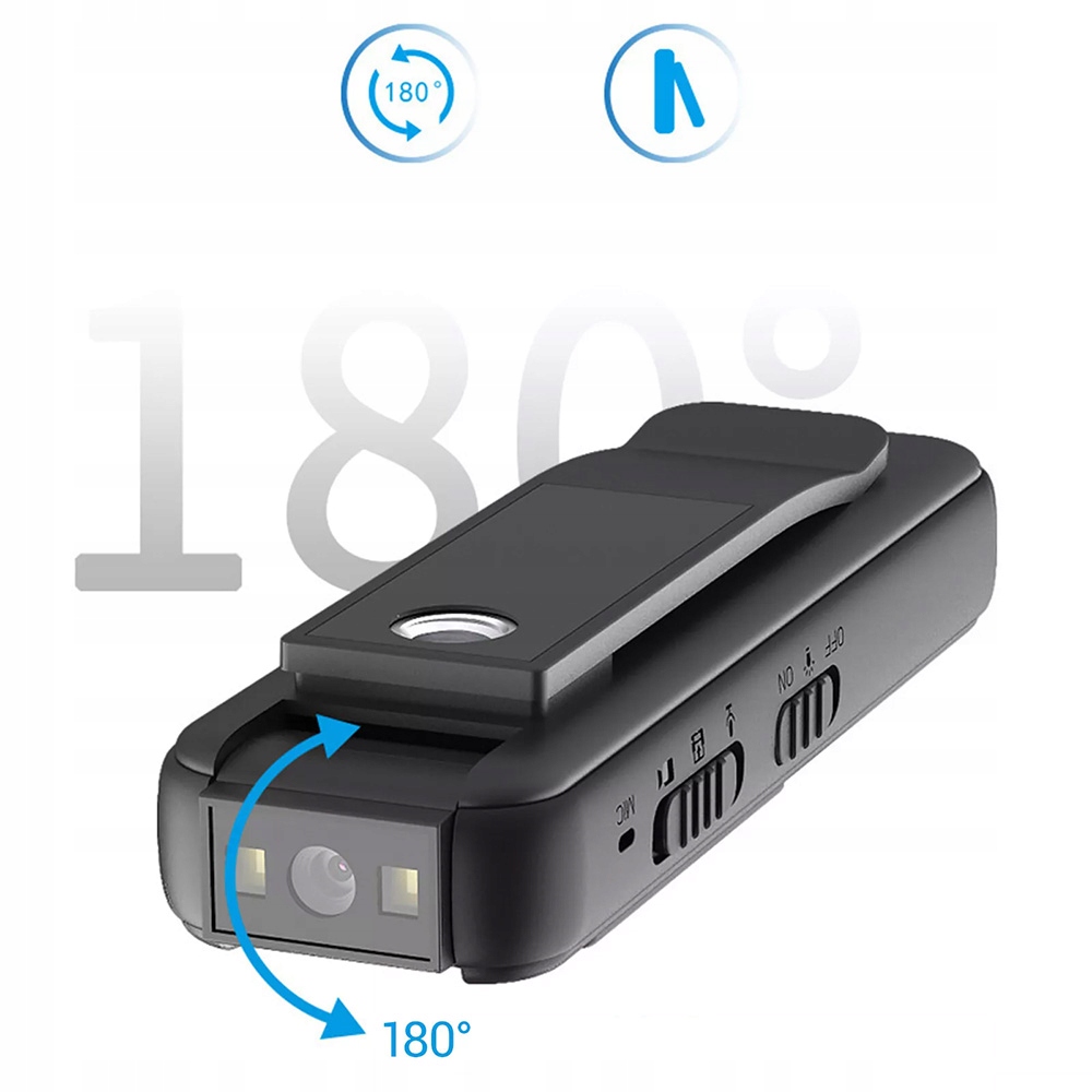 Камера, встановлена на корпусі, підтримує обертання на 180 градусів вручну для зйомки цінних моментів повсякденного життя та дивовижних подорожей. Відеокамеру можна переносити різними способами. Його можна прикріпити до рюкзака або покласти в кишеню. Підходить для різних сценаріїв: відео з тваринами, спорт на відкритому повітрі, зустрічі, лекції, походи, доставка на винос, збір доказів, щоденні докази та поліцейська камера.