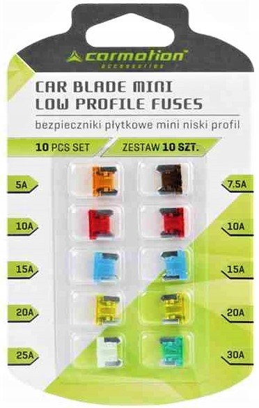 Залежно від схеми використовуються запобіжники різної потужності. У комплекті: