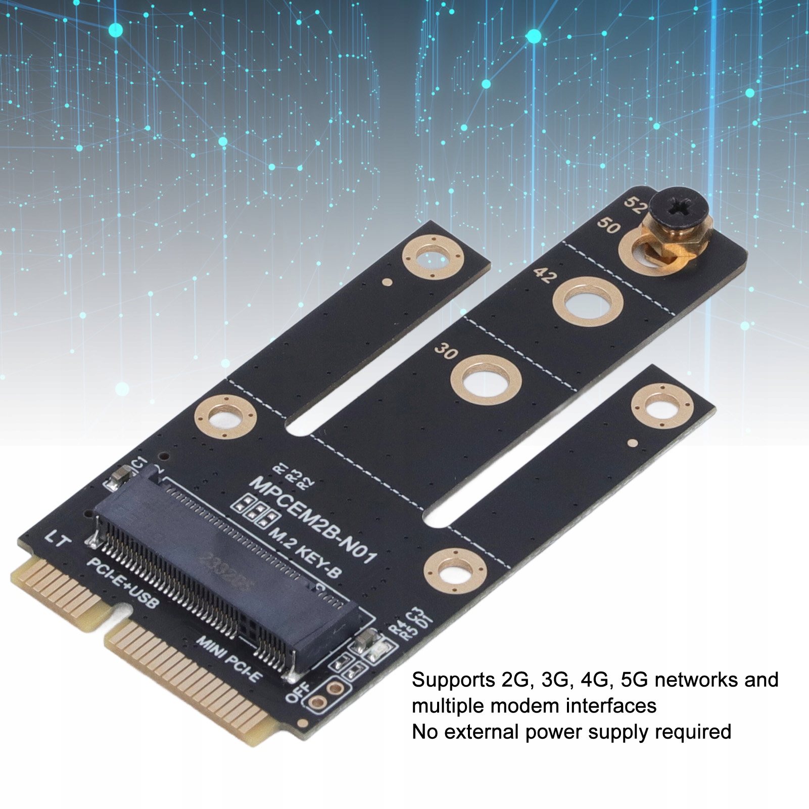 5. РОЗМІР ОПЕРАЦІЇ ТА ПОТОК. ІНТЕРФЕЙС: Ця адаптерна карта Mini PCIe до M.2 сумісна з мережевою картою M.2 KEY B типу 30, 42, 50, 52, слот підтримує PCIe 1X, сигнал USB2.0.