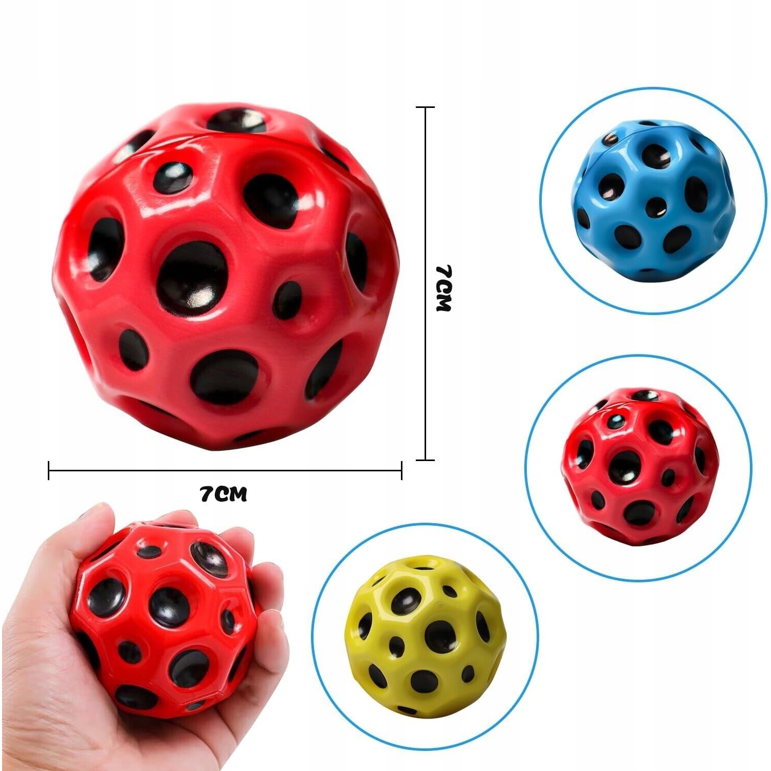 MINI PIŁKA MOON Z WYSOKIM ODBICIEM BOUNCY BALL BOUNCING JUMPBALL 70MM 3 SZT
