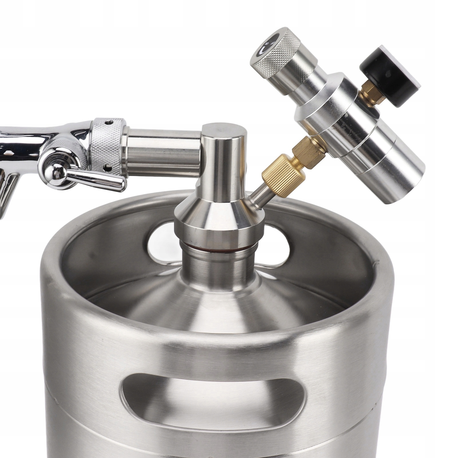 2. Регулятор тиску 60 фунтів на квадратний дюйм: оснащений регулятором тиску, міні-бочонок для гроулера дозволяє контролювати поточний тиск на фунт на дюйм і відповідним чином регулювати тиск, забезпечуючи безпечне розливання, яке можна налаштувати.