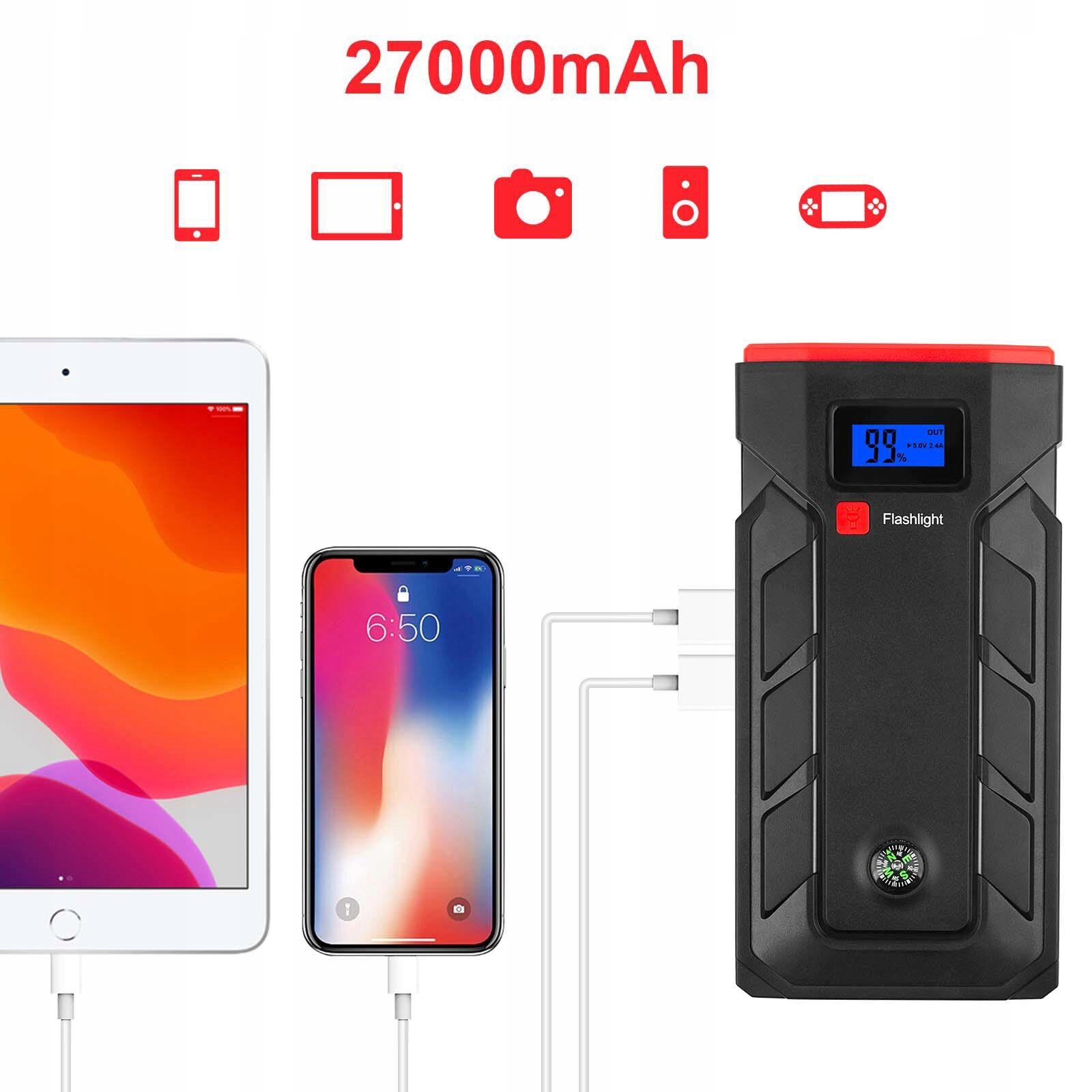 27000mAh 1000A Автомобільний зарядний пристрій Power Bank Power Bank 12v з компасом