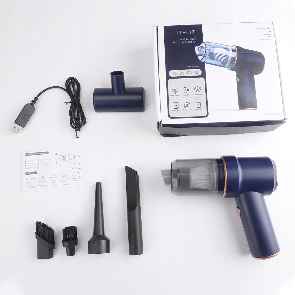 Цей портативний вакуумний очищувач не тільки смокче пил, але й дме пил. Один кінець з'єднувача аксесуарів - це ефект вакуумування, його можна використовувати як пилосос, а інший кінець - це функція, що дме, його можна використовувати як очищувач вакууму повітря. Бездротова ручка має інтелектуальний дизайн, який забезпечує ефективне очищення.