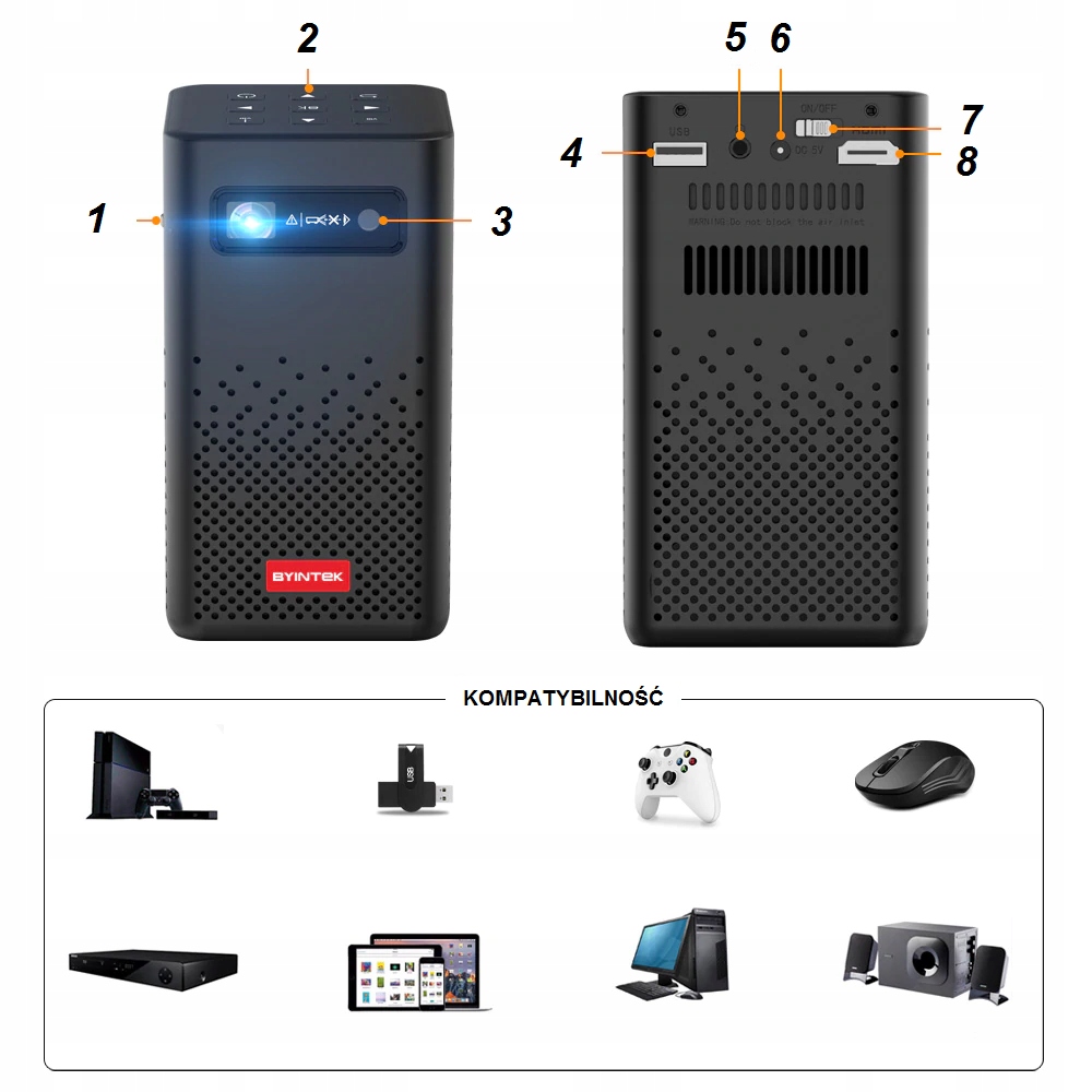 - Розмір проектора: 14 см x 7,8 см x 7,8 см
