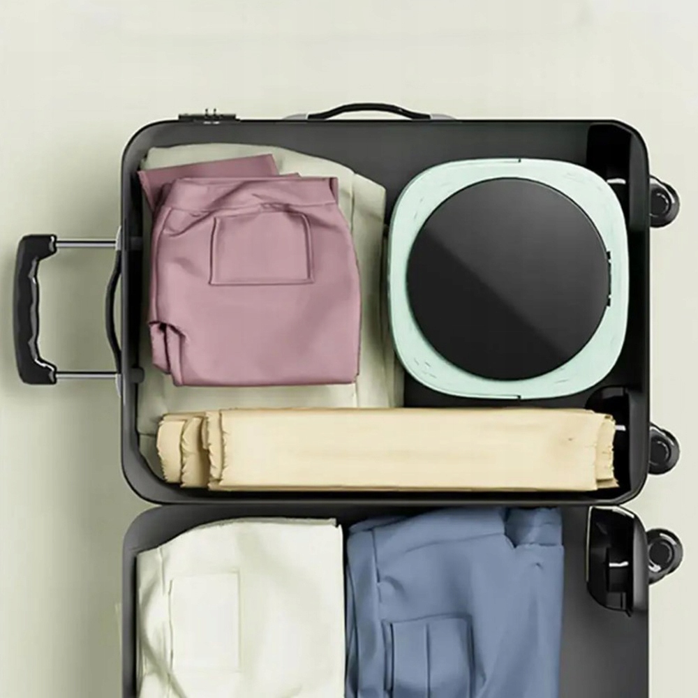 💦Складна пральна машина: ця маленька пральна машина спеціально розроблена для його можна було скласти в маленьку валізу, що полегшує транспортування. Коли ви хочете випрати свій одяг, просто розгорніть пральну машину та покладіть свій одяг. Вона важить менше 3 кг, що робить її ідеальною для подорожей.