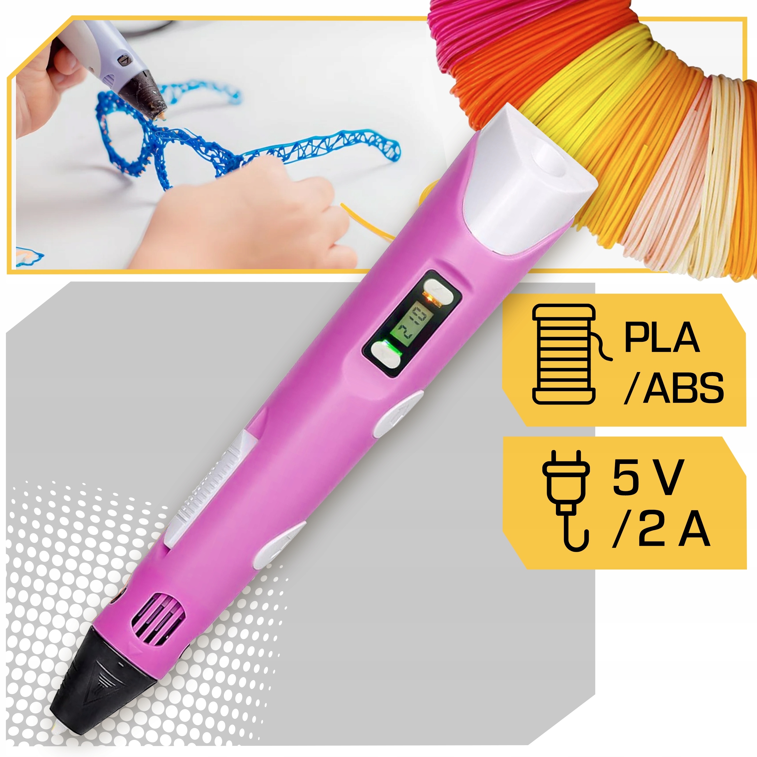 МІНІ ПРИНТЕР 3D РУЧКА Children Magic + FILAMENT 109 + MAT + ШАБЛОНИ