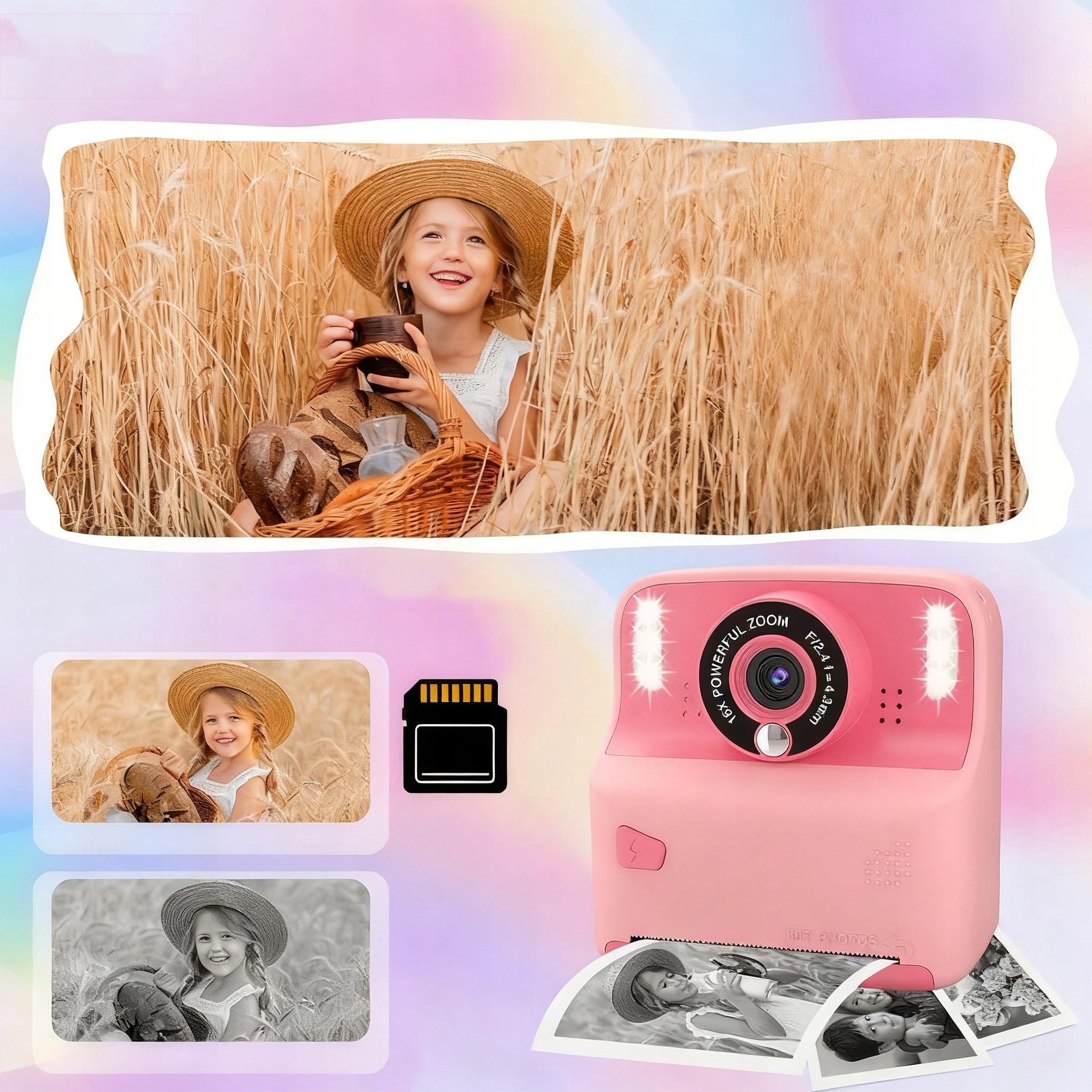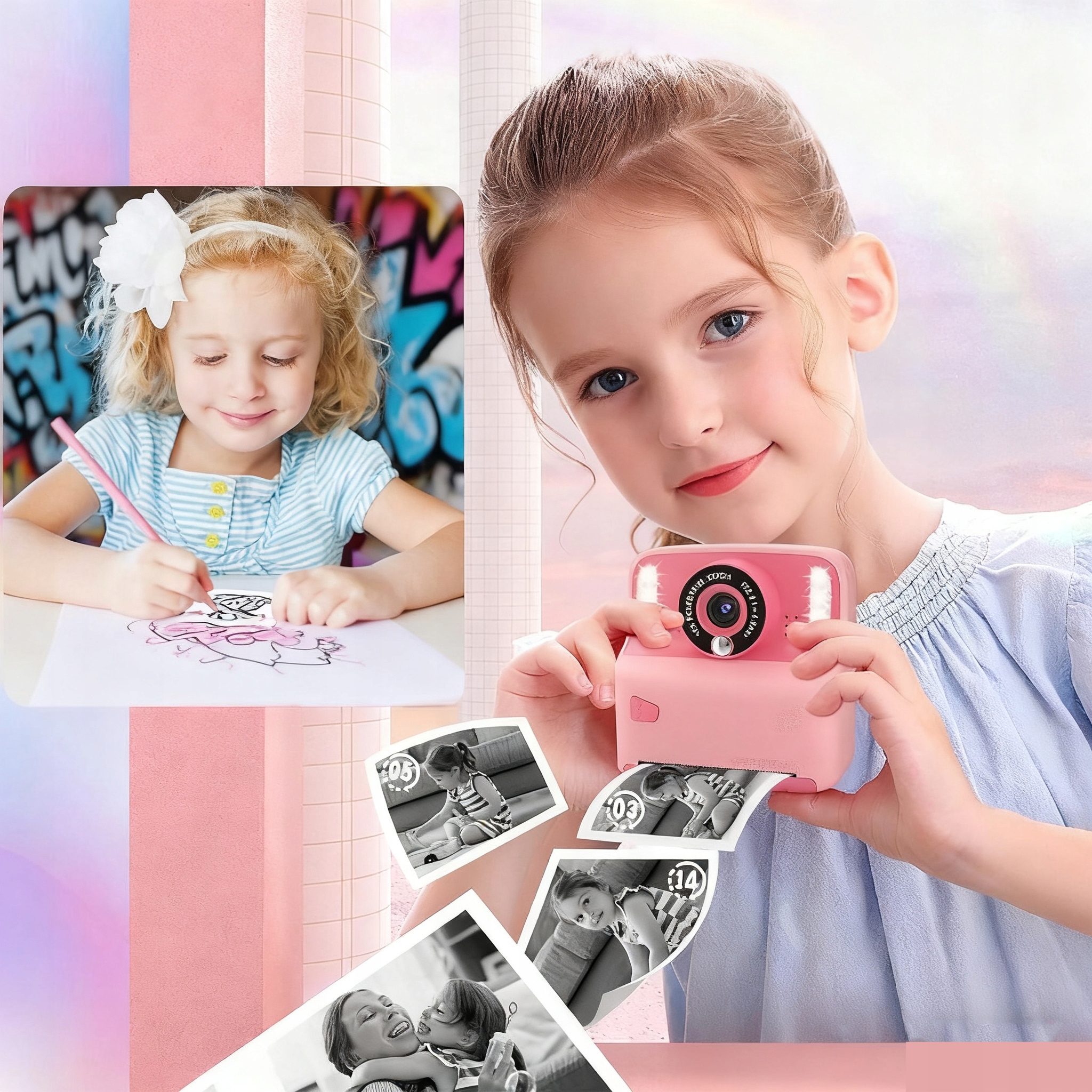 Наша дитяча камера для миттєвого друку — найкращий подарунок для дівчаток і хлопчиків віком 3-12 років. Будь то дні народження, Різдво, свята чи подорожі, ця камера принесе нескінченну радість. Це міні-портативна та модна фотокамера для малюків, яка миттєво друкує чарівні чорно-білі фотографії. Ідеально підходить для маленьких, хто любить фотографувати, і для тих, хто хоче створити власні миттєві спогади.
