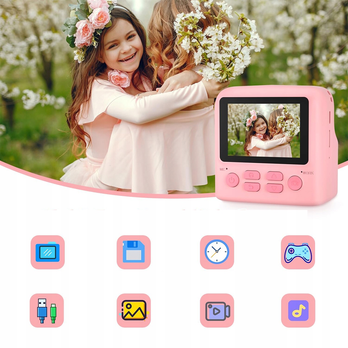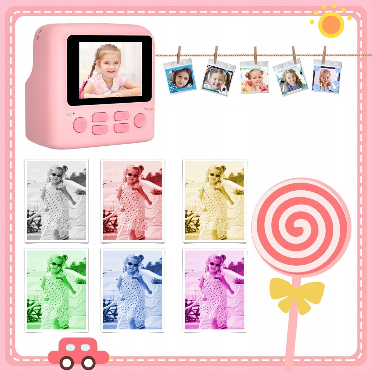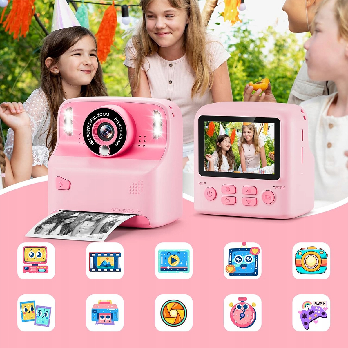 Завдяки 2,4-дюймовому екрану ця камера дозволяє легко переглядати фотографії та відео. Крім миттєвого друку, він також пропонує запис відео 1080P, 15 кадрів фільтра, 16-кратне цифрове збільшення, спалах, сповільнену зйомку, серійну зйомку, ігри, дзеркало для селфі та відтворення MP3. Ваші діти можуть насолоджуватися фотографуванням і миттєвим друком. Ідеально підходить для дитячої фотографії та як невелика іграшка для друку.