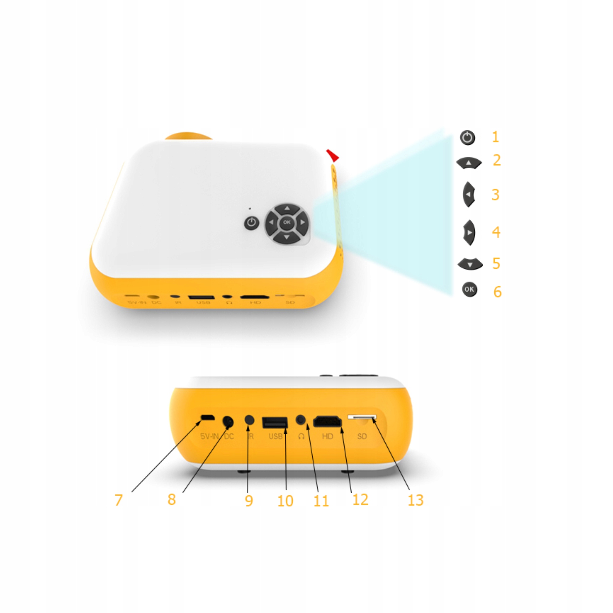 Проектор має дуже маленькі розміри 13 см x 9,7 см x 5 см і поміщається у вашій долоні! Крім того, ви можете живити його від розетки або павербанка, що робить його надзвичайно мобільним.