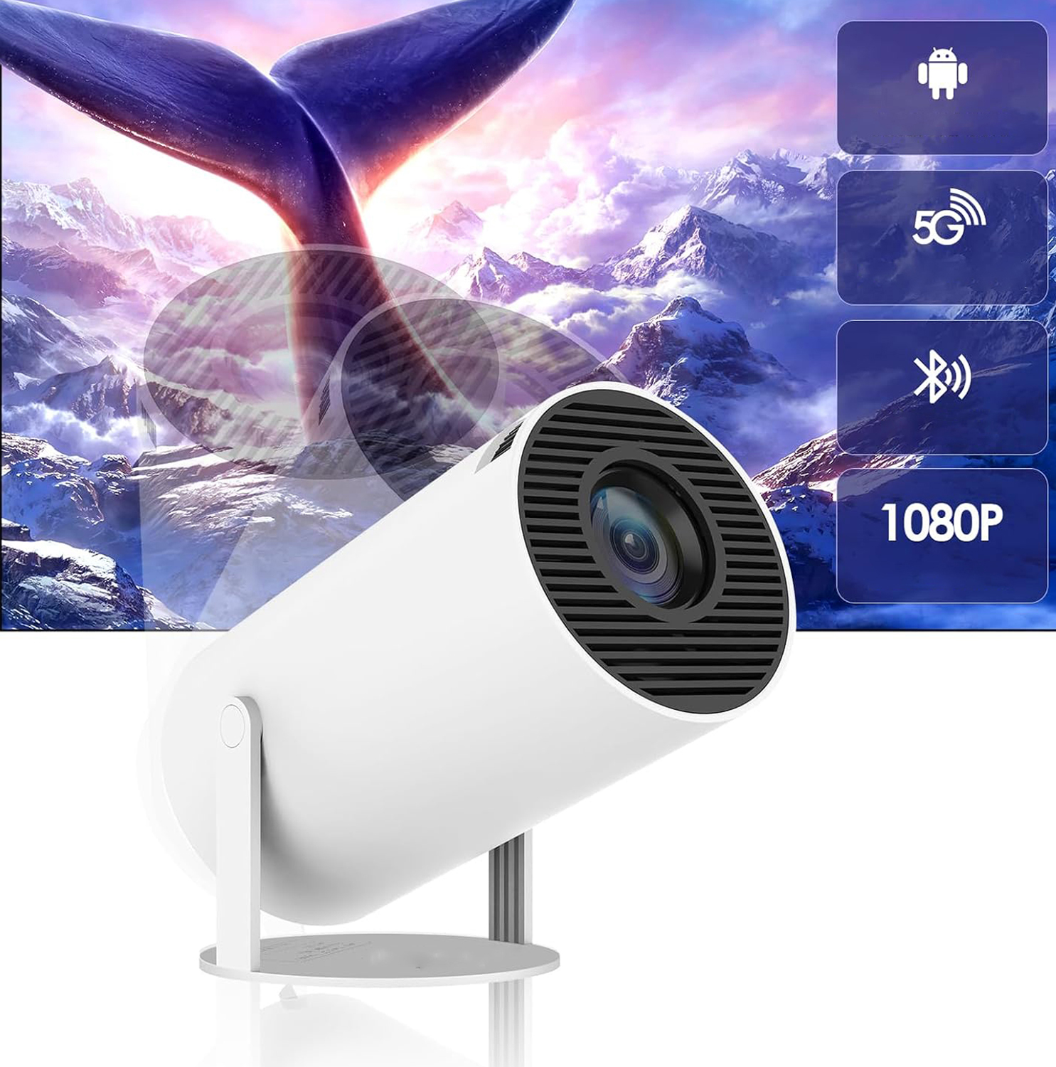 ✅ МІНІ-ІНТЕЛЕКТУАЛЬНИЙ 4K FULL HD 1080P ПРОЕКТОР ПОВЕРТАНИЙ НА 180°, МАЛИЙ ВІДЕОПРОЕКТОР, МОБІЛЬНИЙ ТЕЛЕФОН З ОС ANDROID 11.0 З WIFI 2.4/5G BLUETOOTH 5.0, АВТОМАТИЧНА КОРЕКЦІЯ ТРАПЕЦІЙНИХ СПОСОБІВ!!