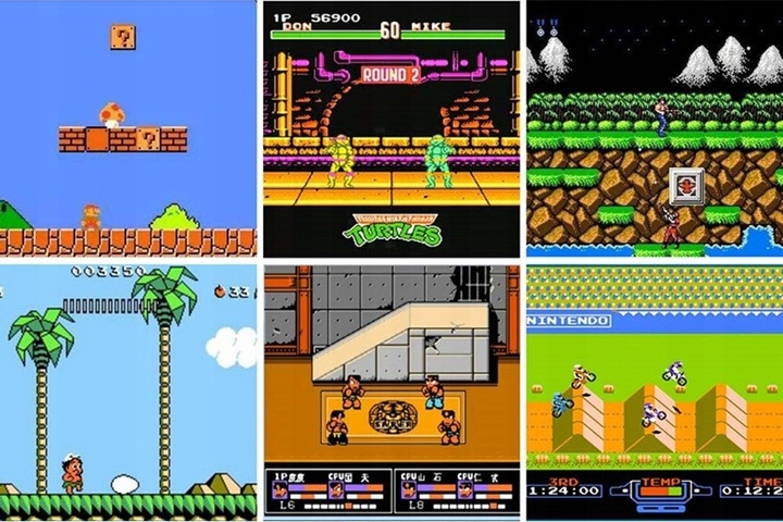 Contra, Super Contra, Chip & Dale, World Cup Soccer, Tetris 2, Tank A1990, Street Fighter V, культова Super Mario Bros, Super Mario Bros 3, Super Mario Bros 6, Super Mario 14, а також: Batman, Spider Man, Tom & Jerry, Pacmania, 1942, Arkanoid, Dr. Маріо, F1 Race, Pac-Man, Donkey Kong, Bomberman, Galaga, Galaxian, незабутній Pinball, Space Invaders і Zippy Race.