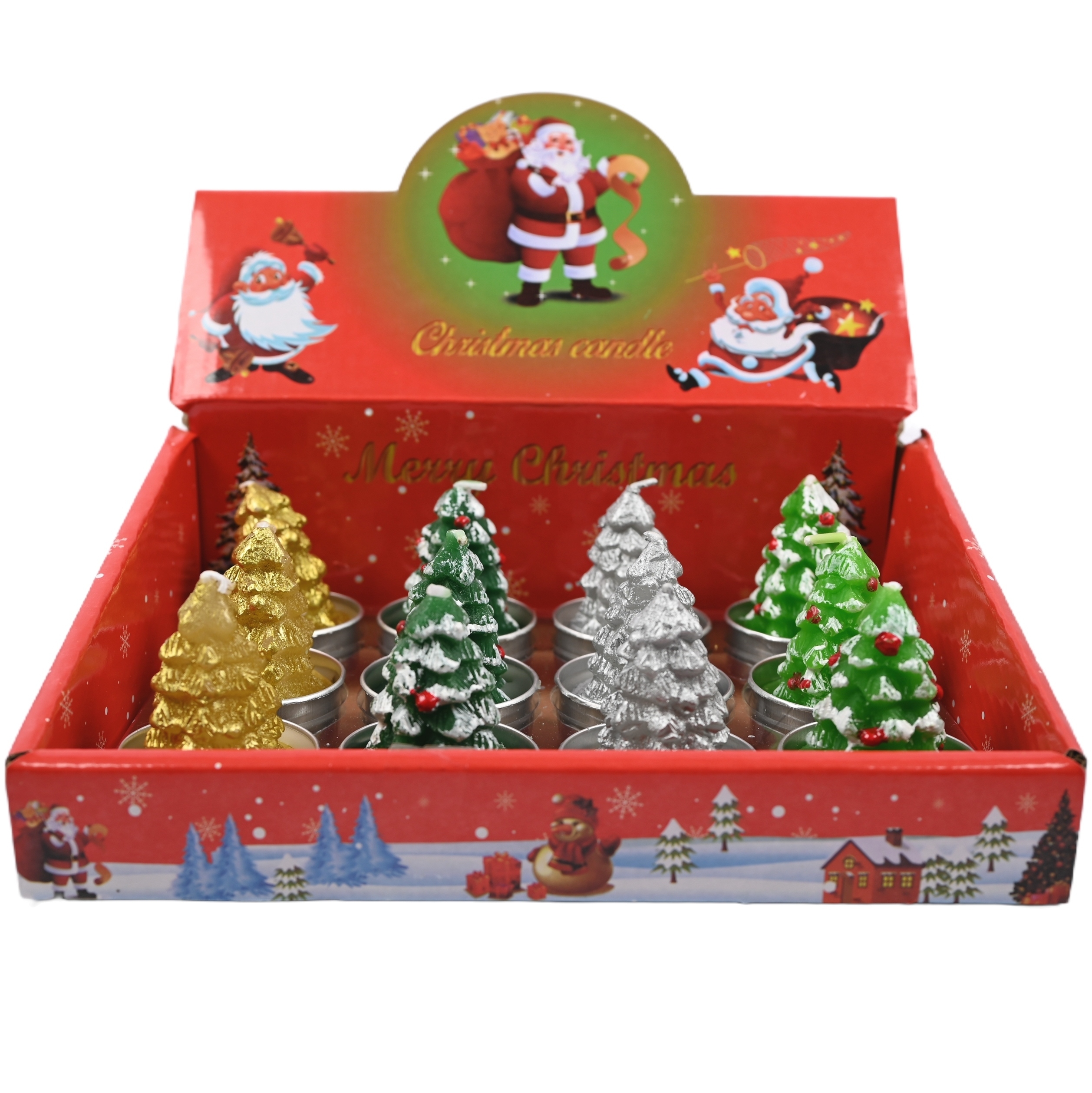 МІНІ РІЗДВЯНІ ДЕКОРАТИВНІ ЧАЙНІ СВІЧКИ ЯЛИНКА 12 КОМПЛЕКТІВ