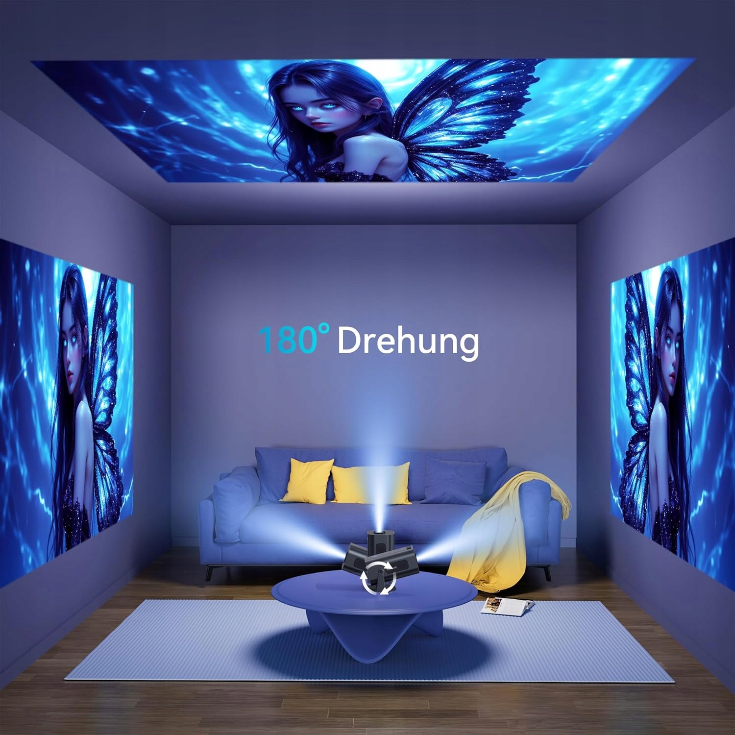 Ротарі на 180 ° поворотні конструкції дозволяють кинути зображення на стіну або стелю. Пристрій важить лише 0,9 кг - ідеально підходить для кіно під хмарою, подорожей або домашнім екранізацією.