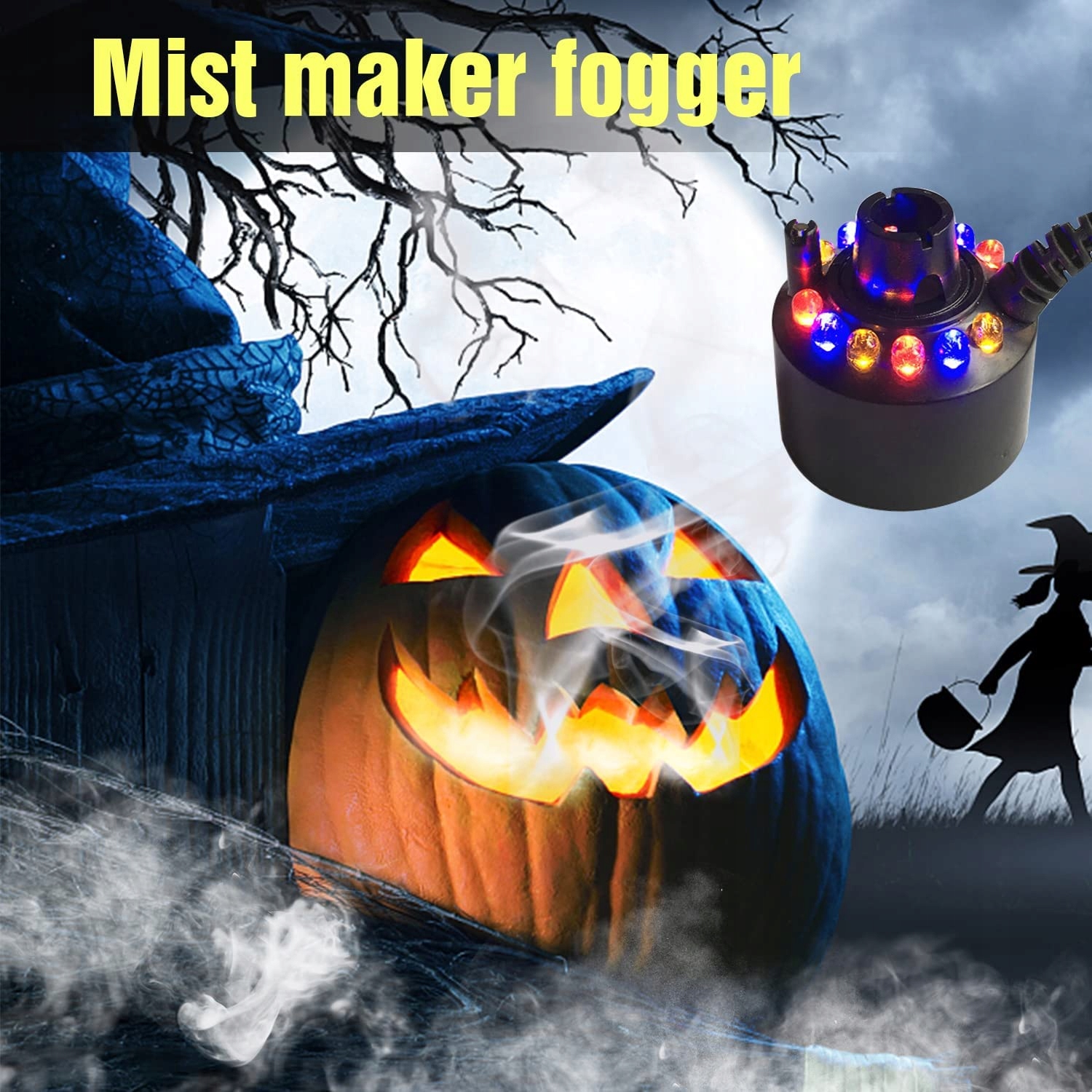 【Працює на Хеллоуїн】 - туман може додати велику кількість туману до ваш ставок, кам'яний сад, котел відьма, ваза, ящик для гадів. Поставляється з 12 світлодіодами, які змінюють колір, створюючи чарівну атмосферу під час залів та інших свят.
