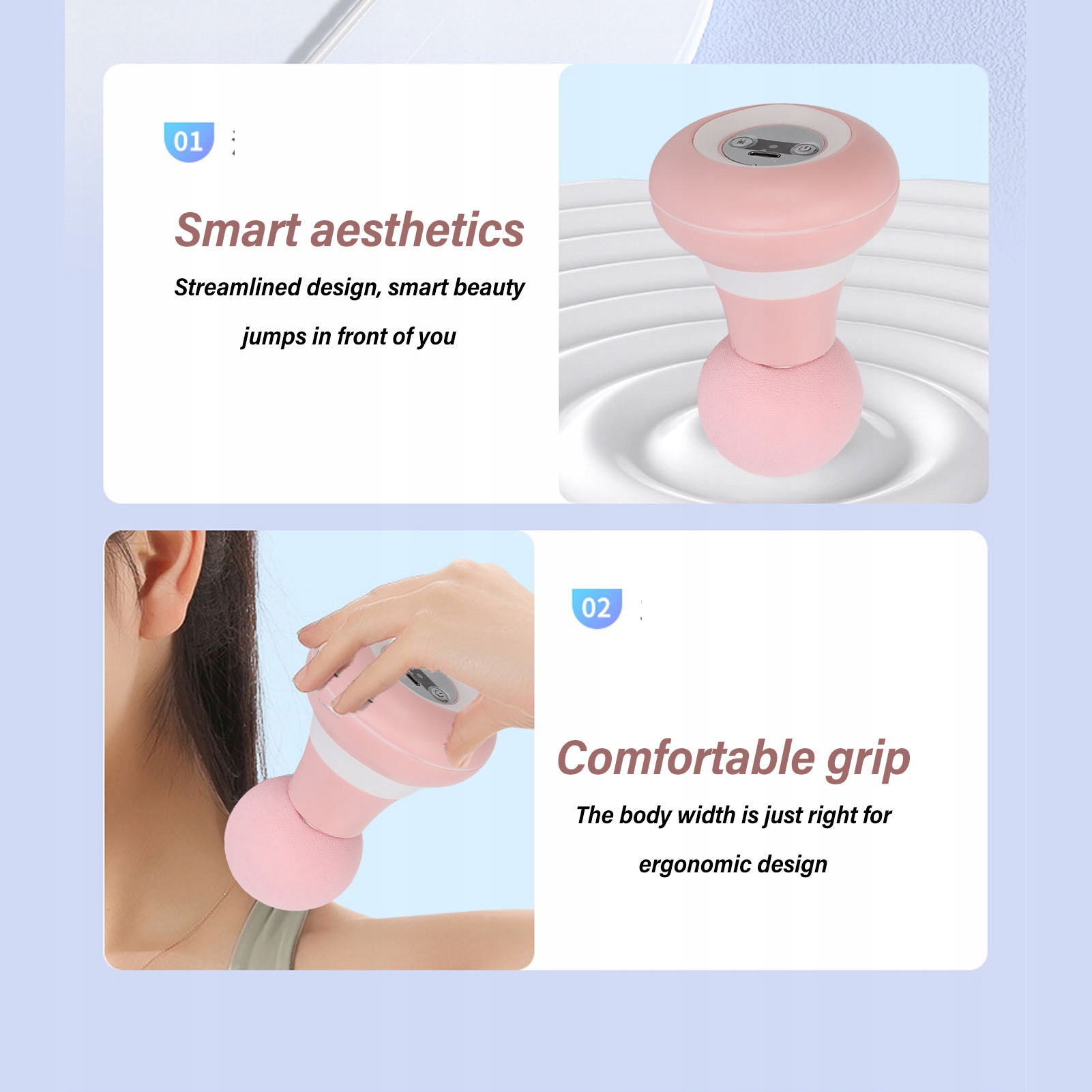 1. Компактний і портативний: легкий і ергономічний для зручного захоплення, тож ви можете зручно носити та використовувати його в будь-який час і в будь-якому місці. Попрощайтеся з м’язовим болем.