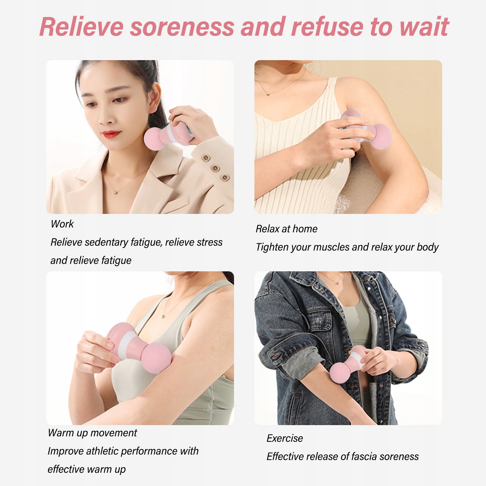 5. Відпочинок у дорозі: цей міні-ручний масажер може ефективно полегшити м’язовий біль і забезпечити вам комфорт і розслаблення, де б ви не були.