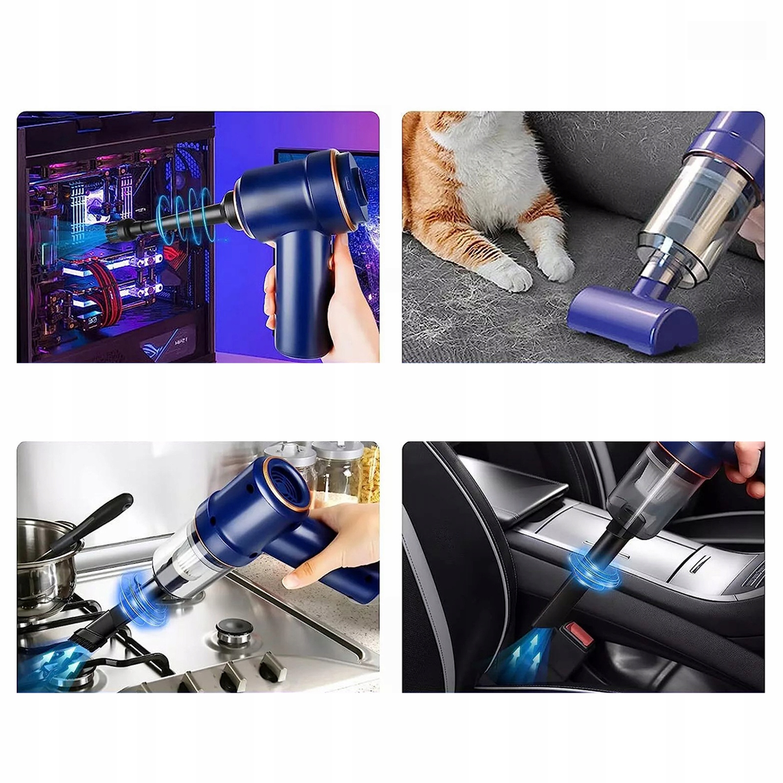 💎 Автомобільний пилосос має дві функції: пилососити або видувати. Завдяки потужній потужності всмоктування він без зусиль збирає пил і бруд з автомобільних сидінь, килимів і щілин. На іншому кінці знаходиться фен, який легко видаляє пил з клавіатур, об’єктивів камер і піаніно. Контейнер для пилососа означає, що пилу ніде сховатися, а всі речі виглядають як нові.🌟🌟