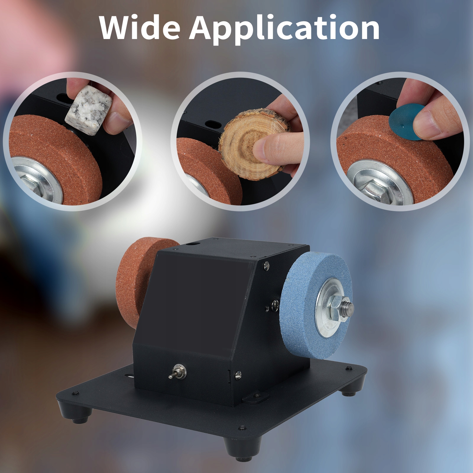 2. 【Ручна машина】Багатофункціональна міні-машина з двома шліфувальними кругами, одним для дрібного шліфування, іншим для грубого шліфування, щоб задовольнити різні потреби шліфування, ідеальний подарунок для любителів рукоділля. 【Регулювання швидкості】 Поворотом ручки на адаптері живлення можна досягти
