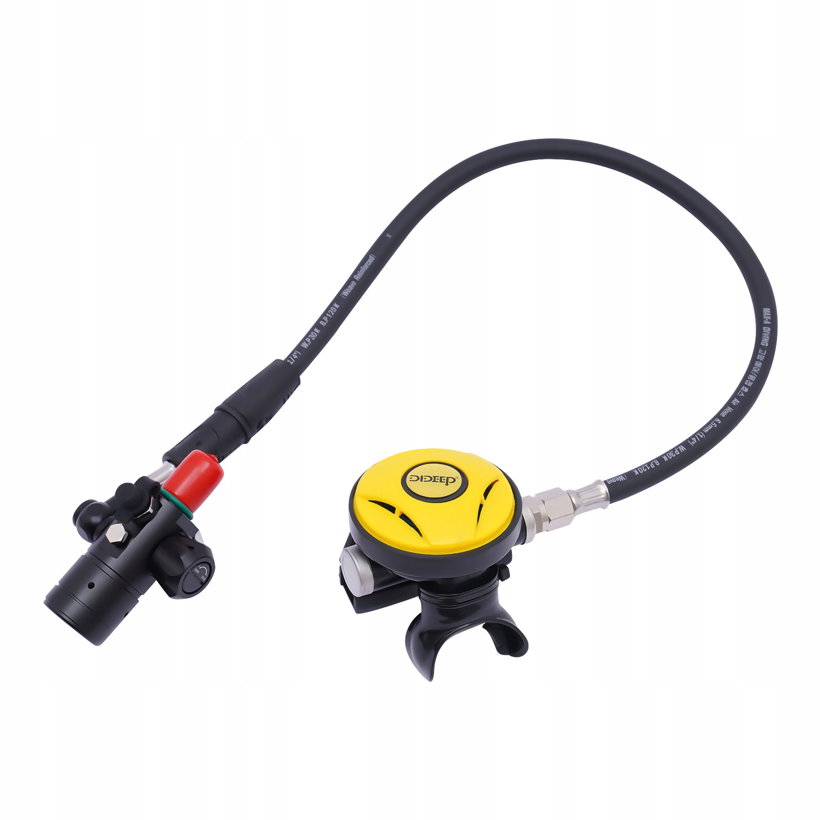 - 3. Максимальна глибина цього продукту становить 30 футів. Тиск повітря в водолазній пляшці не повинен перевищувати 3000PSI/200Bar/20MPA. Час занурення залежить від індивідуальної ємності легенів і ритму дихання під час занурення, а також від глибини занурення. Промивайте його після кожного використання та зберігайте в сухому місці.