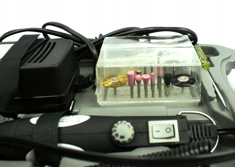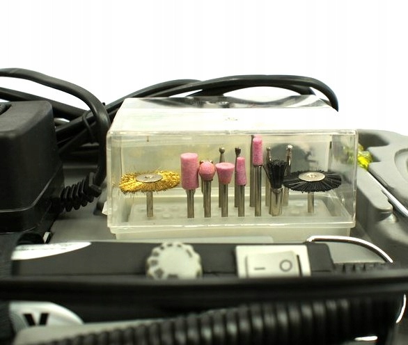 - Набір з 45 насадок дозволяє виконувати широкий спектр робіт: заточування, різання, свердління, полірування, гравірування та інше