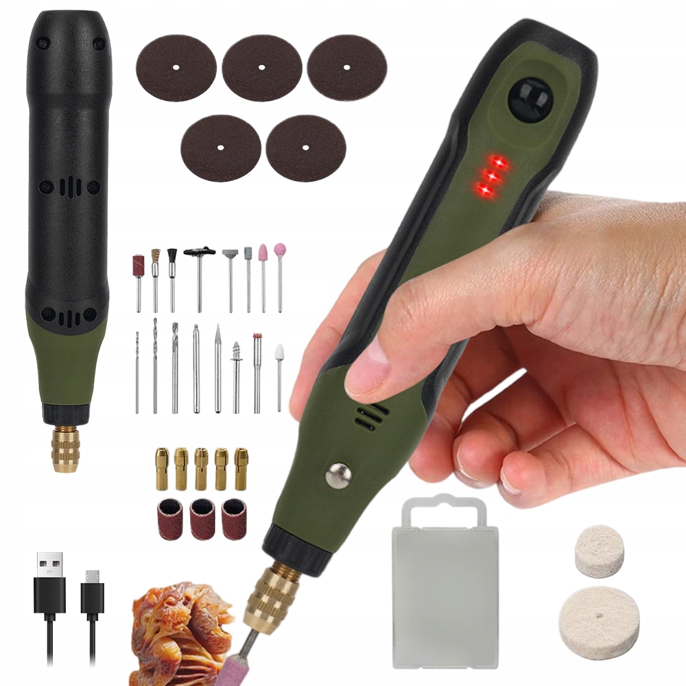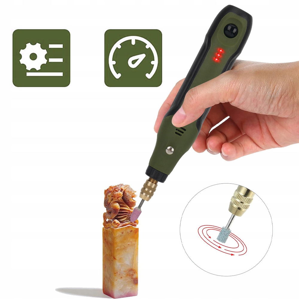 - Це ніби цілий набір інструментів в одному зручному пакеті. Примітка: не підходить для важких проектів. Можна використовувати для різноманітних легких робіт, таких як гравірування, полірування та видалення забруднень шляхом заміни міні-різців. Аксесуари можна швидко та легко замінити без інструментів.